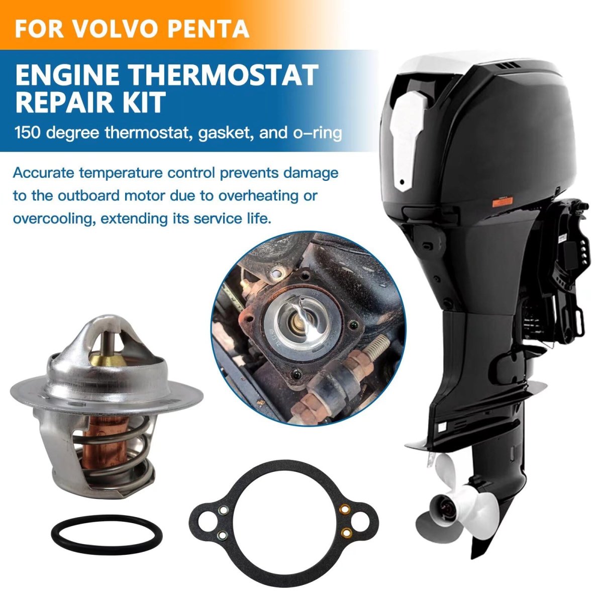 - Thermostat Kit For Vol-vo Penta Gasket 4 3 5 0 7 L