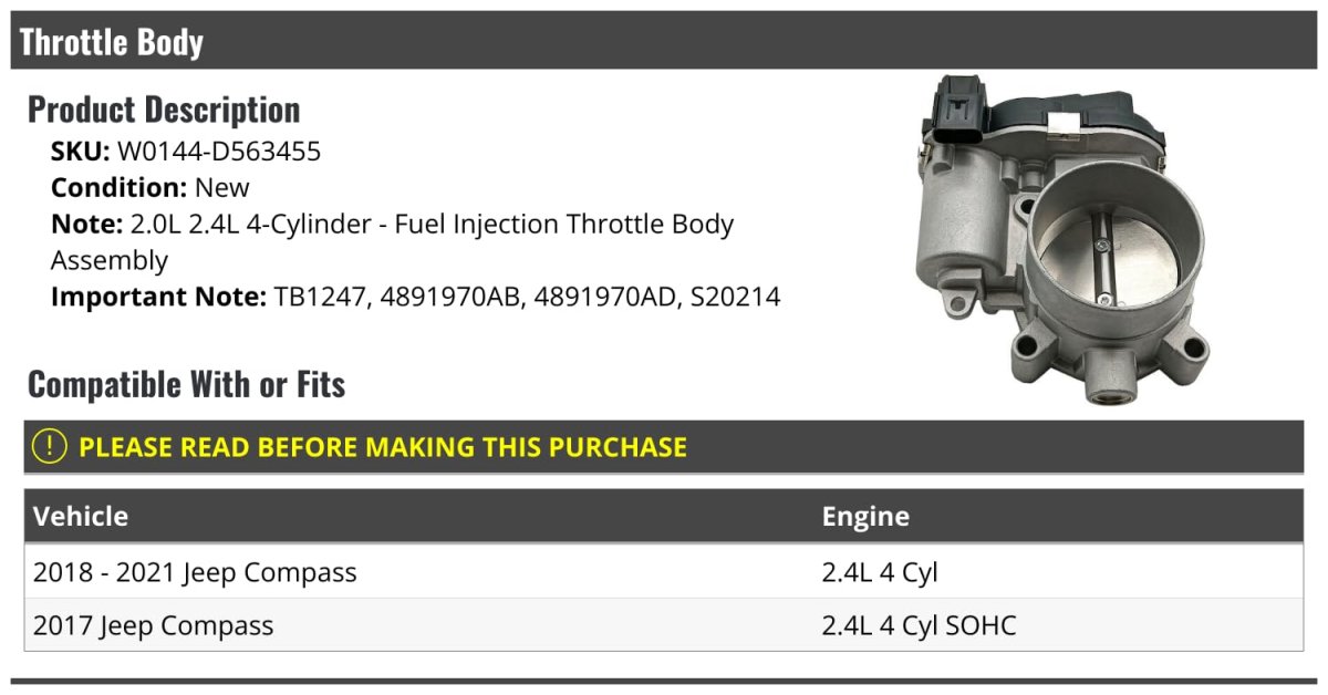 - Throttle Body For 2017-2021 Jeep Compass 2 4l 4-cylinder