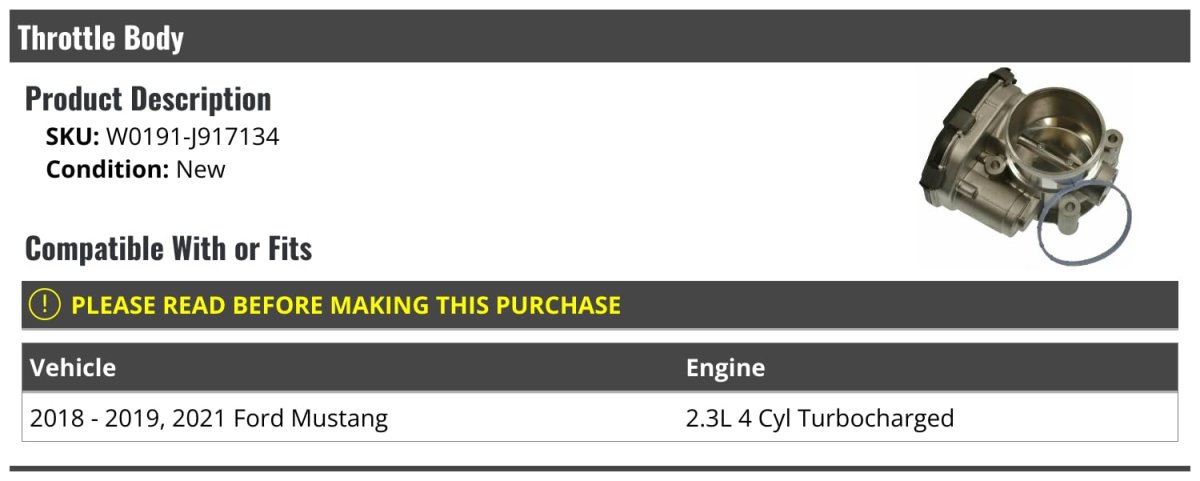 - Throttle Body For 2018-2019 2021 Ford Mustang 2 3l 4-cylinder Turbo