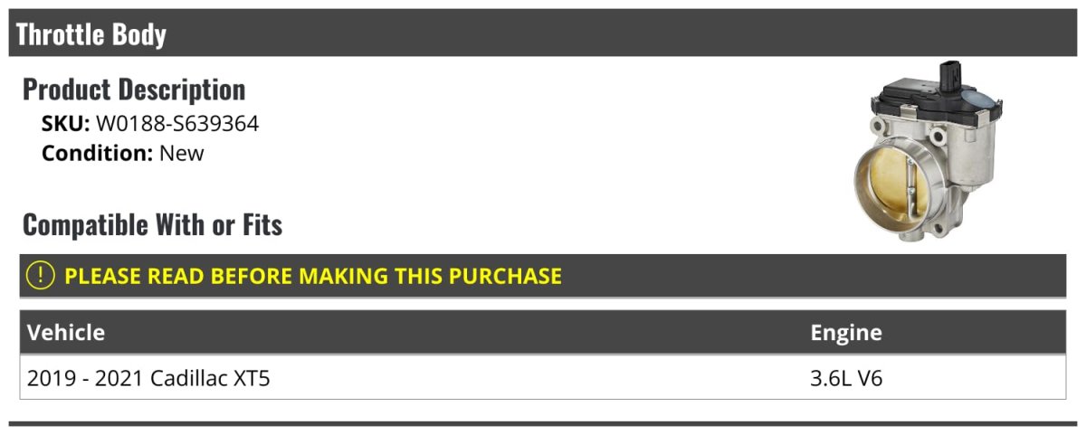 - Throttle Body For 2019-2021 Cadillac Xt5 3 6l V6