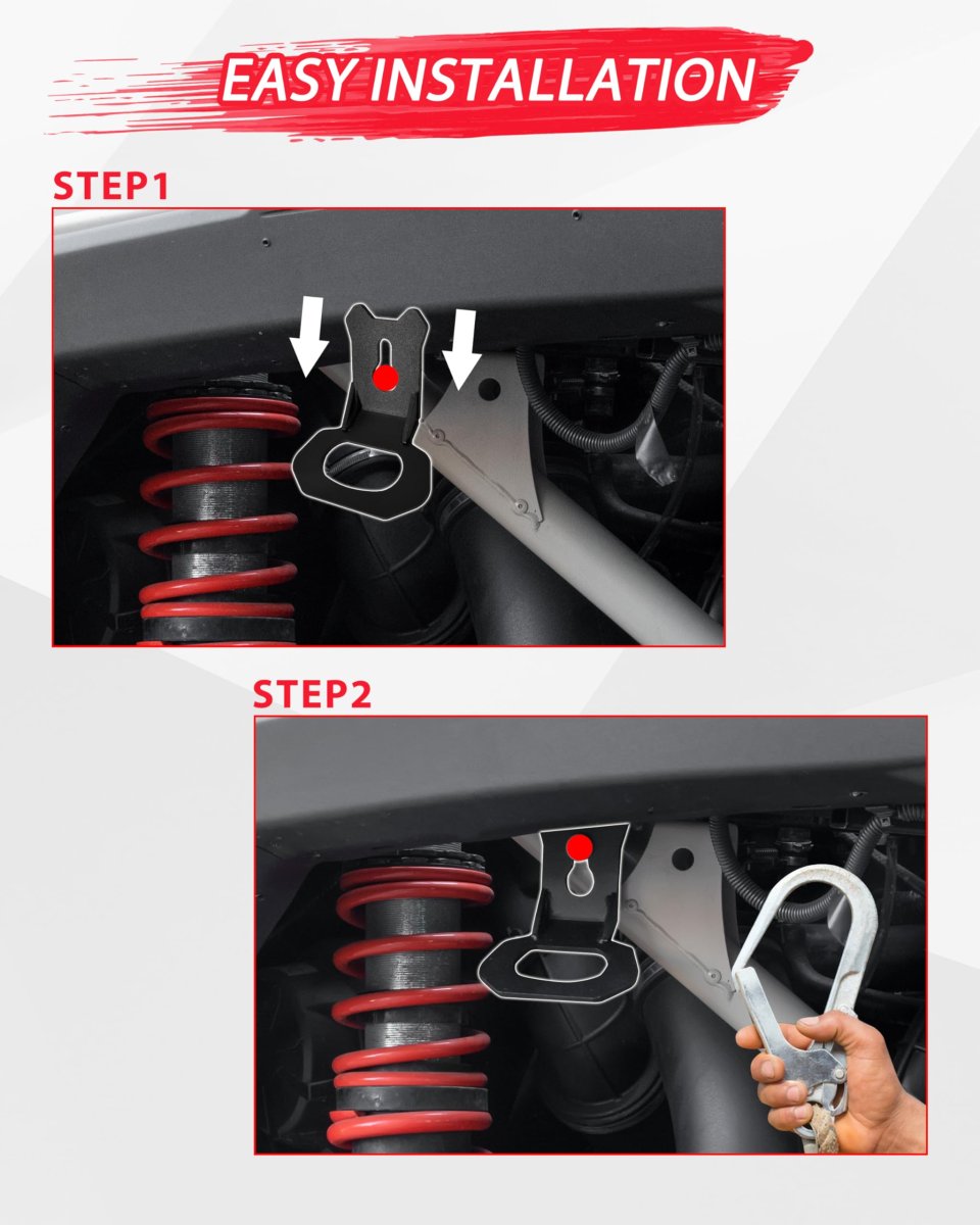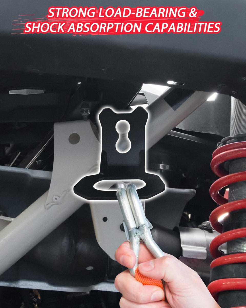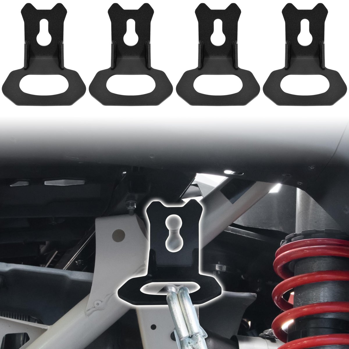 PERFECT COMPATIBILITY: Compatible With Can-Am Maverick X3 MAX TURBO R RR 2017-2025 all models. MATERIALS: Made of carbon steel with high strength, durable service, with strong corrosion resistance; UV resistant black powder coating design, with outstanding advantages of friction resistance and scratch resistance, can work in any weather environment. ADVANCED TECHNOLOGY UPGRADING: Advanced laser cutting and welding; Completely upgraded thickness, tested multiple times for performance, with powerful load-bearing and shock-absorbing capabilities, providing a stable fixing point for the fastening strap to ensure your travel safety. EASY INSTALLATION: Easy to install; Can refer to the instructional video in the listing. [PACKING LIST] - Package includes: 4PCS tie down bracket (2 Front & 2 Rear).Other fine products