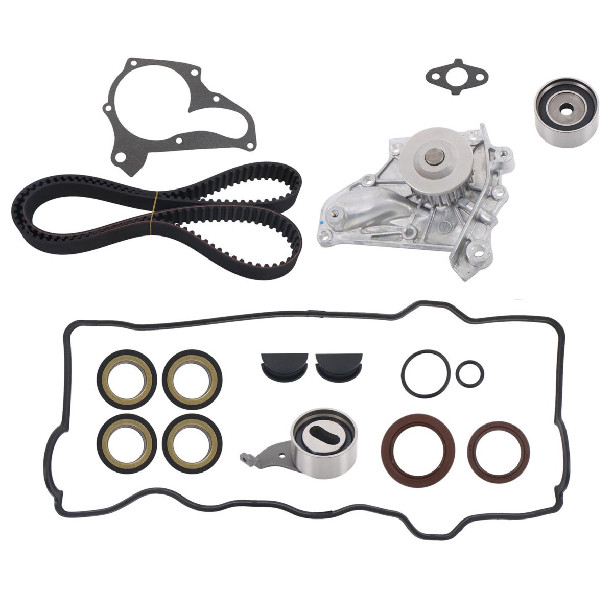 Compatible Models: Replacement for Toyota Rav4 1996-2000 / Mr2 1991-1995 / Solora 1999-2001 / Camry 1987-2001 / Celica 1987-1999. Replacement Part Number: 161007918583, 1611079025, 1610079127. Installation: The installation of the water pump requires a certain level of sealing; it is recommended to have it installed by professionals. Package include: 1 x Timing Belt (163 teeth), 1 x Roller Tensioner Bearing, 1 x Idler Bearing, 1 x Crankshaft Seal, 1 x Camshaft Seal, 1 x Water Pump with Gasket, 1 x Valve Cover Gasket, 4 x Spark Plug Seals, 2 x Half Moon (As shown in the figure above).Other fine products
