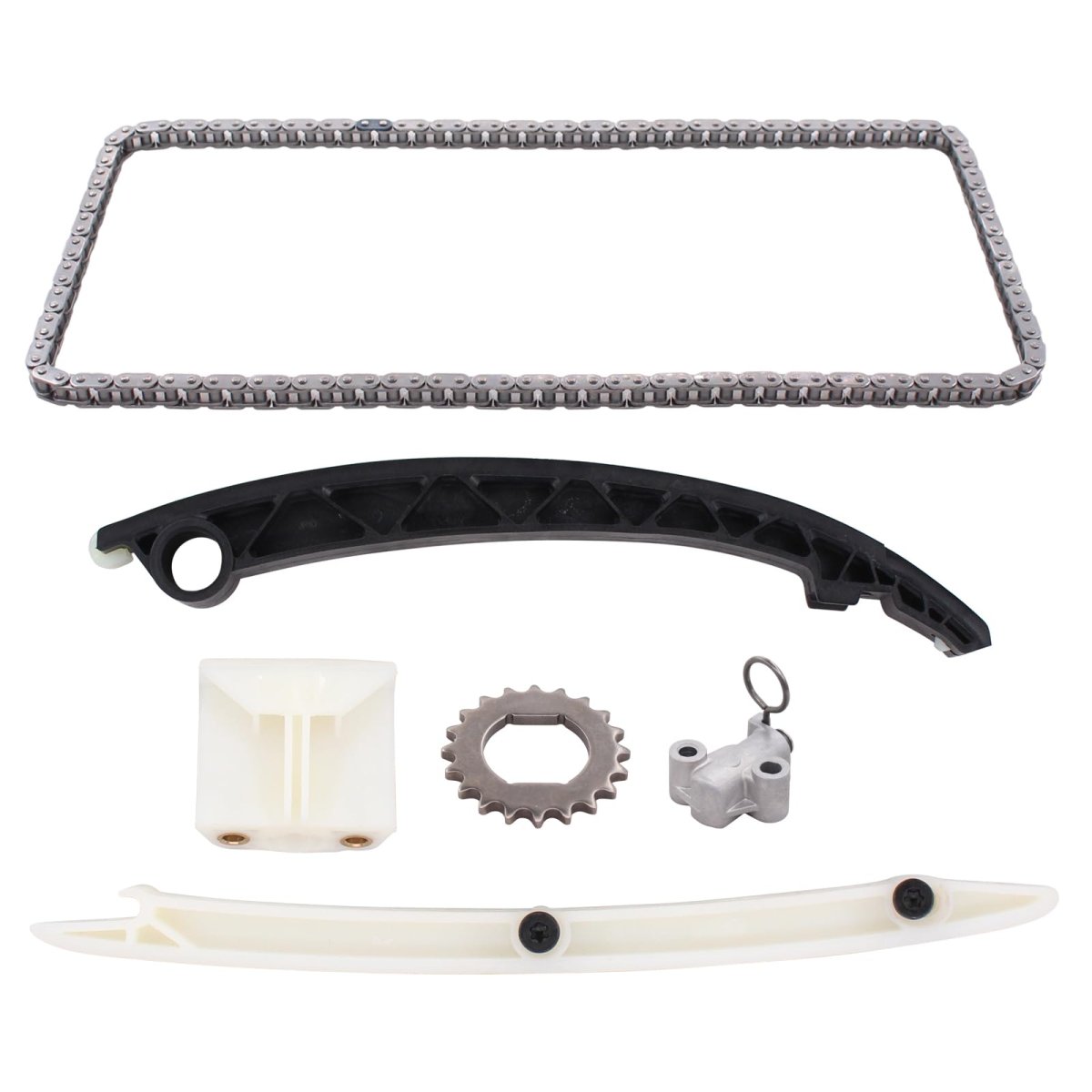 Applicable for Cadillac ELR 1.4L L4 1398cc 85ci 2014-2016. Appliable for Chevrolet Cruze 1.4L L4 1364cc 83ci 2011-2015; Cruze Limited 1.4L L4 1364cc 83ci 2016; Sonic 1.4L L4 1364cc 83ci 2012-2019;Appliable for Chevrolet Trax 1.4L L4 1364cc 83ci 2013-2019; Volt 1.4L L4 1398cc 85ci 2011-2015. Appliable for Buick Encore 1.4L L4 1364cc 83ci 2013-2015; Encore 1.4L L4 1364cc 83ci 2016-2019;. Replaces part number: 90529570;55355345;55353999;55353997;55565005;55562235. Package includes: 1 x Timing Chain (Center) 130 Link;1 x Timing Crankshaft Sprocket (Outer) 20 Teeth;1 x Timing Chain Guide (Left);1 x Timing Chain Guide (Upper);1 x Timing Chain Tensioner Guide (Right);1 x Timing Chain Tensioner (Right).Other fine products