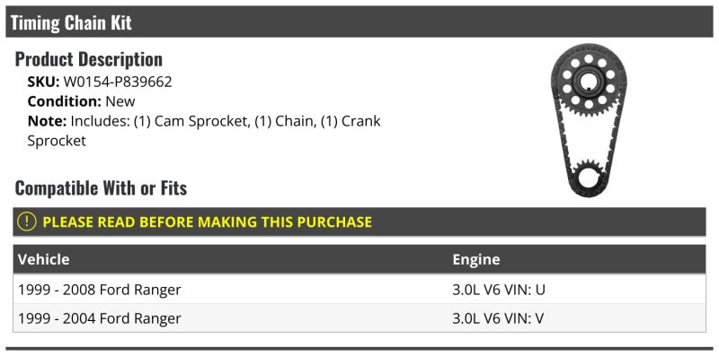 - Timing Chain Kit 3-piece Compatible With 1999-2008 Ford Ranger 3 0l V6