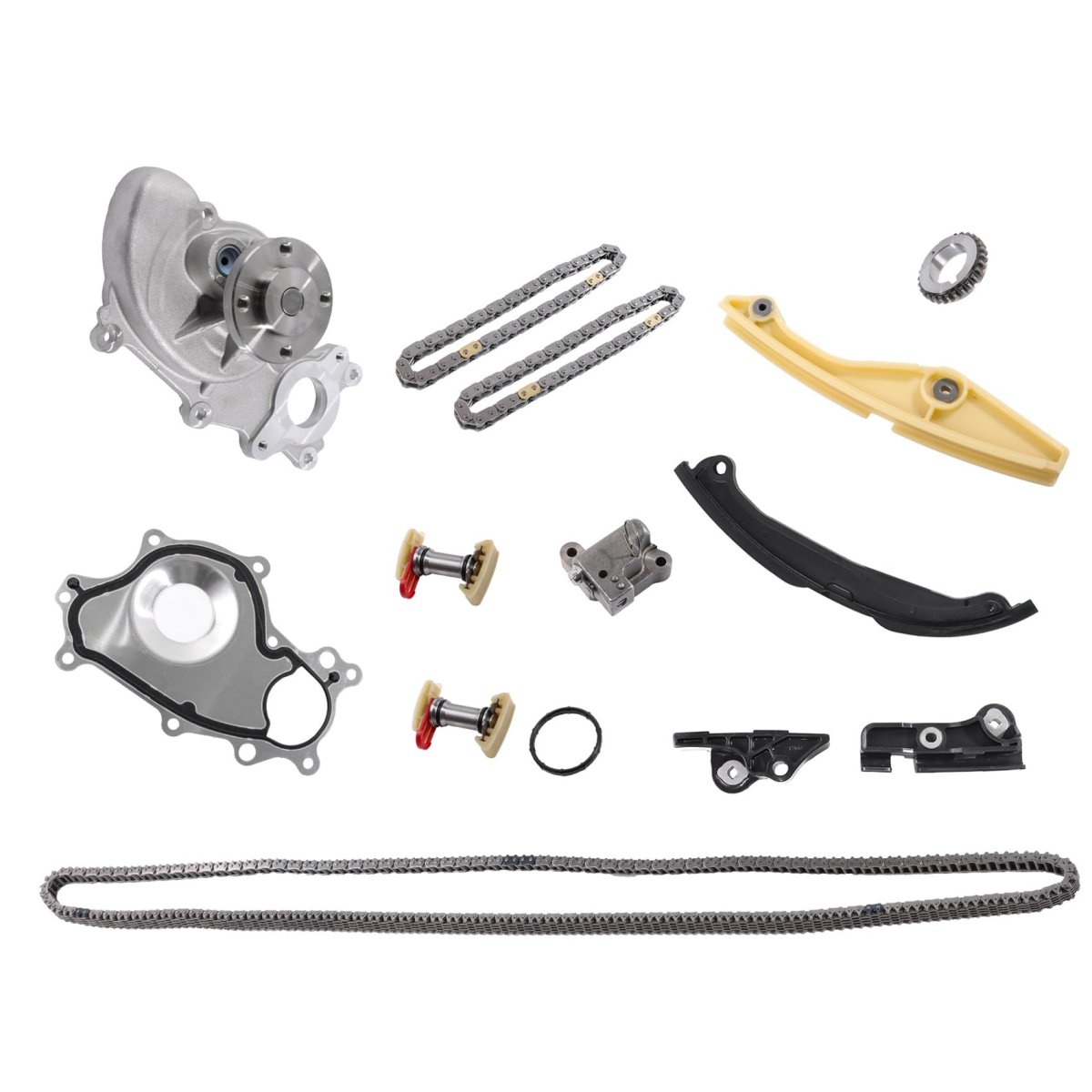 Fitment: Replacement for F150 3.5L 2011-2016, replacement for Navigator 3.5L 2015-2017, replacement for Expedition 3.5L 2015-2017. Replacement Part number: 1253250, 125-3250, BL3Z8501A, ER3Z8501C. Feature: Good product quality can reduce the maintenance cost in the later stage. Easy to install: The installation process of our products is simple and convenient, and does not require special tools, usually requires conventional tools to complete, saving your installation time. Package includes: 1 x Engine Timing Chain (254 Links), 2 x Engine Timing Chain (50 Links), 1 x Sprocket (29 Teeth), 4 x Guides, 3 x Engine Tensioners, 1 x Water Pump.Other fine products
