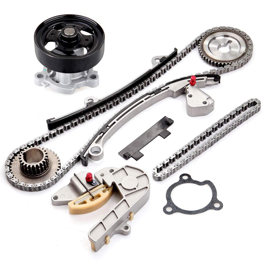 Vehicle Fitment: Compatible with 2002-2006 for Nissan Altima 2.5L,2002-2006 for Nissan Sentra 2.5L. Replaces Part: 9-4212S,94212S,76133,TK3032,TK10060,21010-F461B,TKNI032,WPNI032,AW9427,131-2289,210106N226,WP2340,150-2340,WP638,TK638,1502340,13025-AE02A,13070-JA00A,13070-8J012,13091-JA00A,13085-EA000,13024-EA000,13021-EA00A,13028-JA01A,15041-8J015. What You Get: 1x Timing Chain (164 links),1x Balance Shaft Chain (70 links),1x Crankshaft Sprocket (22 teeth, 48 teeth),1x Sprocket (44 teeth),1x Upper Tensioner,1x Balance Shaft Lower Tensioner,1x Upper Guide (short clip),1x Guide Rail (left),1x Guide Rail (right),1x Water Pump.Other fine products