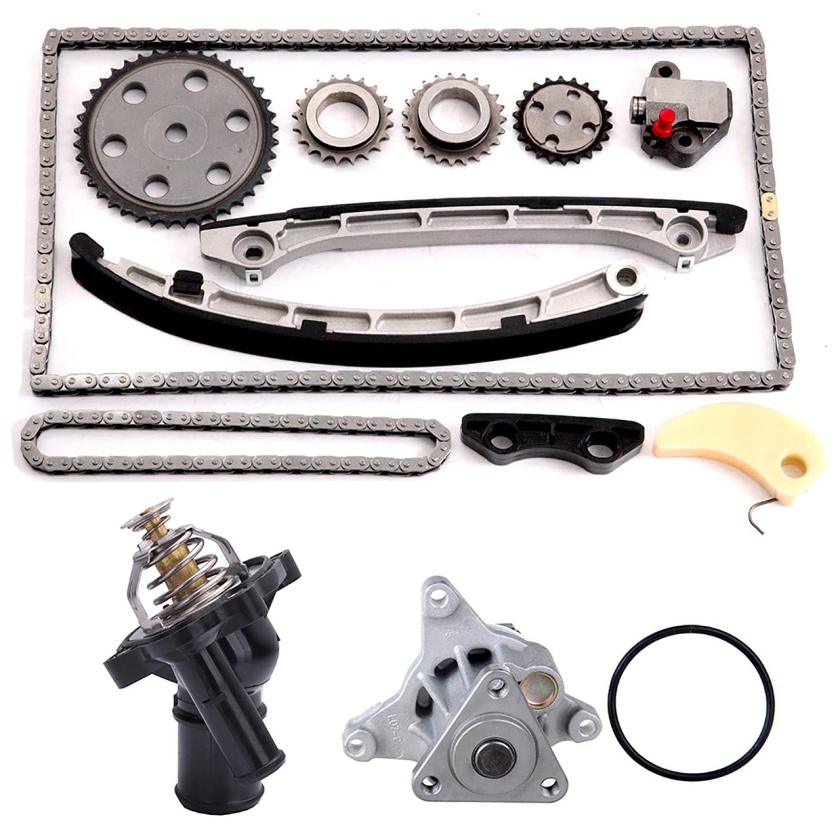 Vehicle Fitment: Compatible with 2007-2013 for Mazda 3 2.3L,2003-2007 for Mazda 6 2.3L,2007-2012 for Mazda CX-7 2.3L,2010 for Mazda CX-7 2.5L. Replaces Part: L3K912425,L3K9-11-316,L3K9-14-143,AW4126,41120,941120,1256000,L33615170,L327-15-170. What You Get: 1x Timing Chain-(138 Links),1x Oil Pump Chain-(60 Links),1x Gear,1x Crank Gear,1x Oil Pump Gear,1x Tensioner,1x Timing Chain Guide-(Left),1x Timing Chain Guide-(Right),1x TENSIONER-(oil Pump),1x Oil Chain Guide-(oil Pump),1x Water Pump w/Seal,1x Thermostat,(As pictures showed).Other fine products