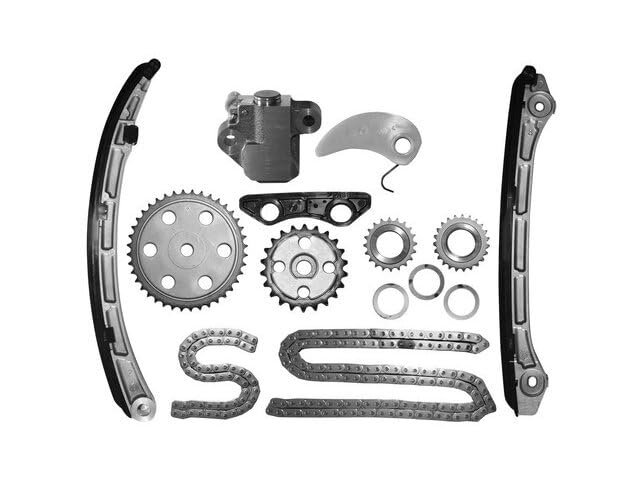 Includes: (1) Cam Sprocket, (2) Chains, (1) Crank Sprocket, (2) Guides, (1) Oil Pump Sprocket, (1) Tensioner Arm, (2) Tensioners. Compatible with or fits: 2007 - 2013 Mazda 3 Mazdaspeed 2.3L 4-Cylinder Turbocharged. Timing Chain Kit with Sprockets. Review Description to Ensure Proper Fit. OE Quality.