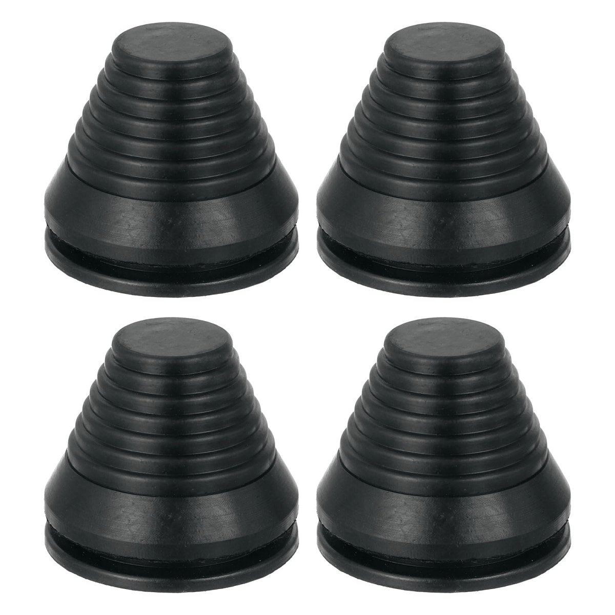 [Tower Shaped Grommet] The size of the rubber grommet is 48x40x42mm/1.9x1.57x1.65inch(OD*ID*H), you will receive 4 pcs rubber grommets, which can meet your daily needs.. [Material] Made of rubber, the surface of the desk grommet is smooth and has no burrs. It has high elasticity, is not easy to deform, has good wear resistance, good corrosion resistance, and high-temperature resistance, and can be used for a long time.. [Features] The rubber grommets can prevent wires or other materials from rubbing against metal, and the black grommets will not destroy your decoration style when used, and can blend into the desktop.. [Easy to Use] The rubber grommet is easy to use, cut a diameter of the right size in the top of the rubber plug then snap it directly into the drilled hole, and pass the wires through until the installation is finished.. [Wide Application] Firewall plug grommets are suitable for automobiles, computer desks, electrical cabinets, water pipes, chemical pipes, machinery manufacturing, etc..Other fine products