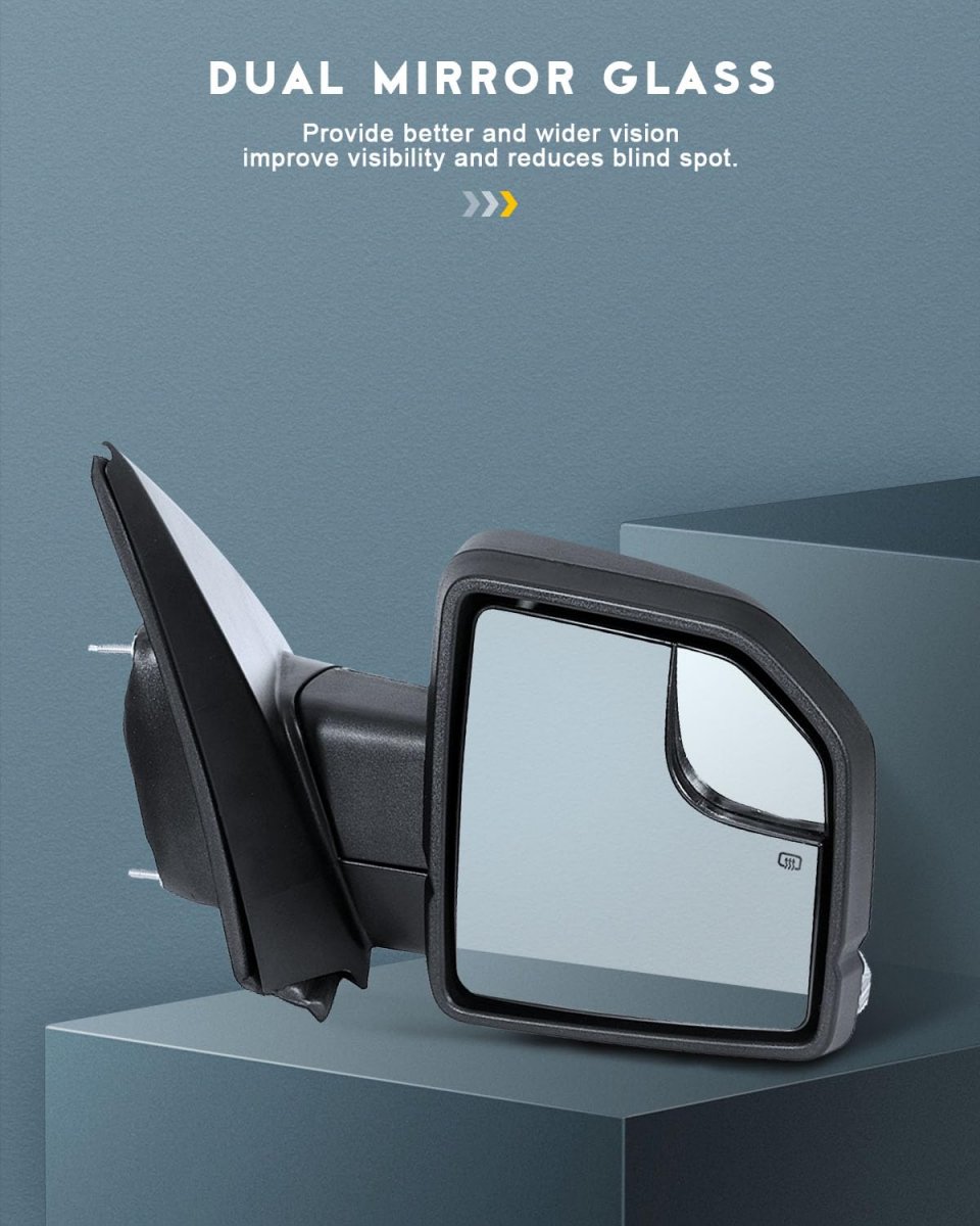 - Towing Mirrors Compatible For Ford F150 2015-2020 With Power Adujusted And Heated Function Right Side Mirror