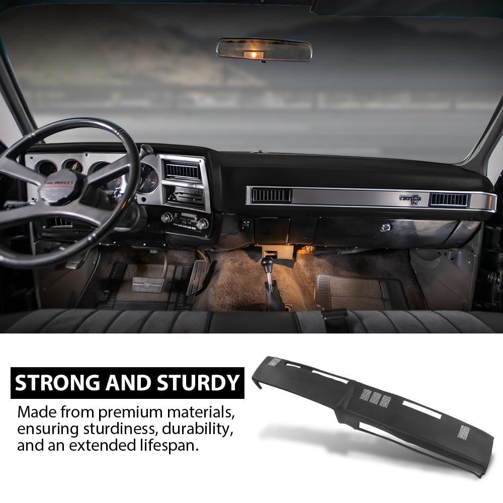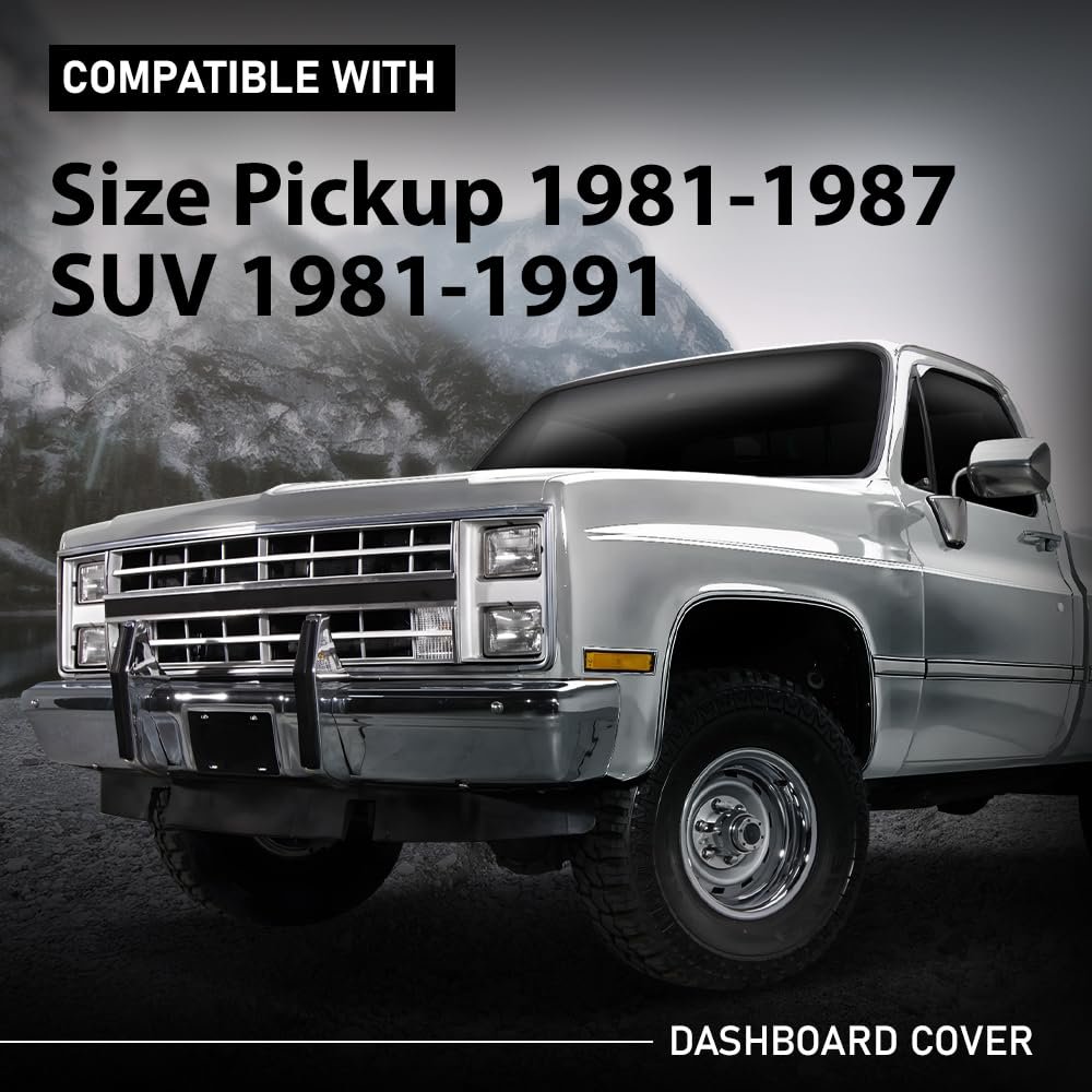 Compatibility: Dash Cover Compatible with GMC Chevy Full Size Pickup 1981-1987; Compatible with GMC Chevy SUV 1981-1991. Excellent material: Dashboard Made of TPE material, with good durability and stability, can maintain its function and appearance for a long time. Exquisite appearance: Dashboard cover has good surface finish, fashionable appearance, bringing visual appeal and exquisite sense for automobile interiors. Excellent Workmanship: advanced technology and implemented strict quality control measures, ensuring excellent performance and quality. Installation: No modification Requires. Produced under strict quality control standards, you can place it on the oginial product.Other fine products