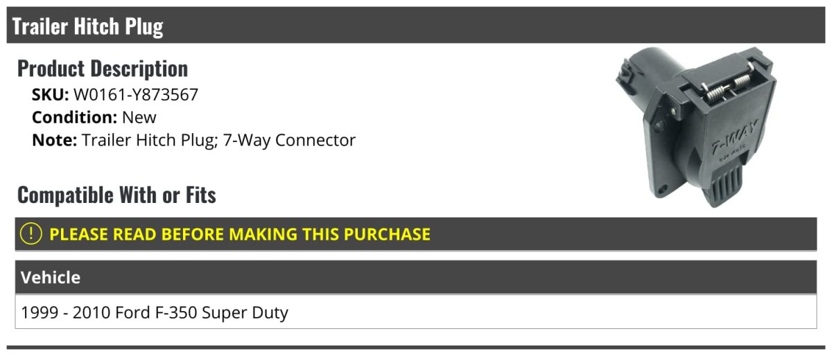 - Trailer Hitch Plug 7-way Connector For 1999-2010 Ford F-350 Super Duty