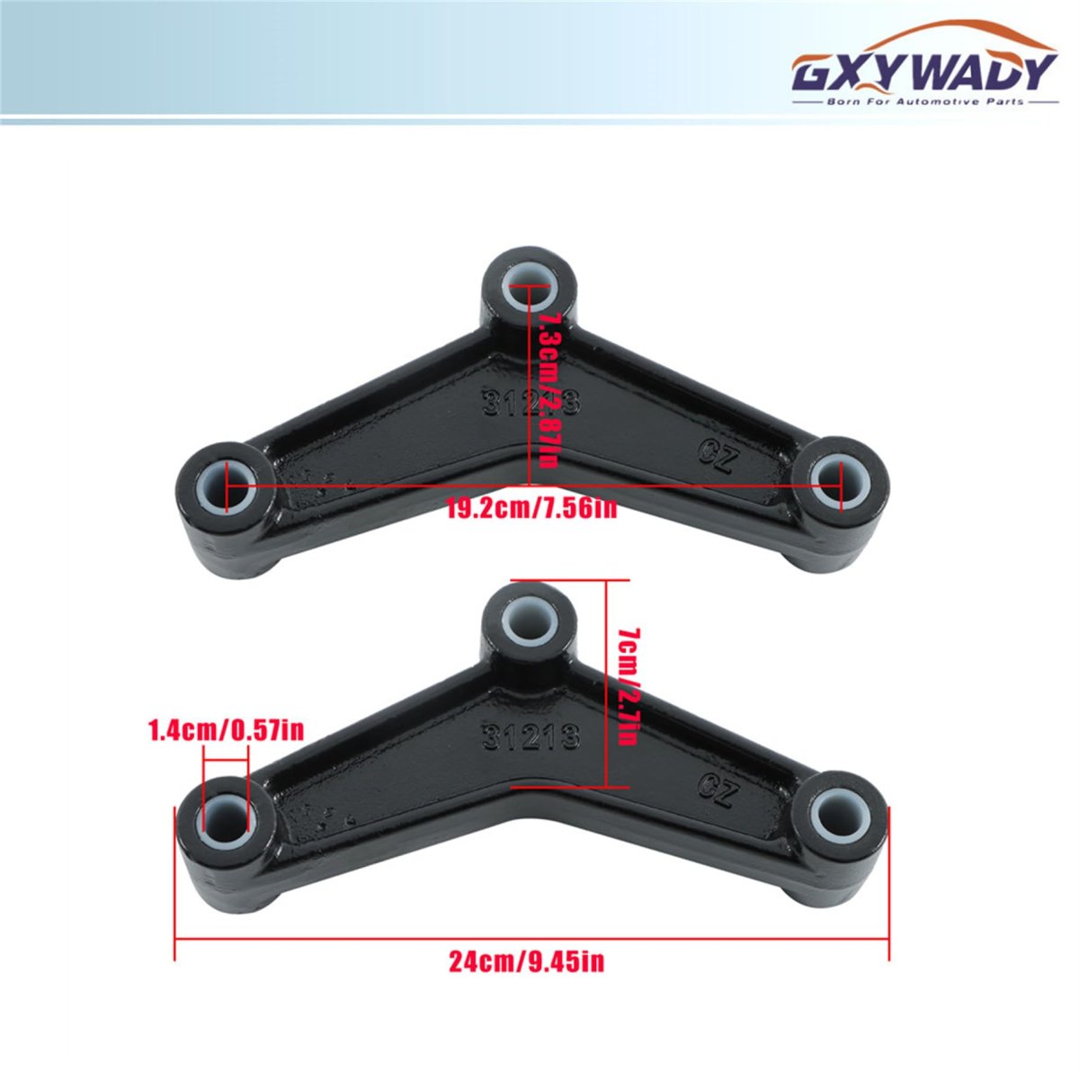 Function: The trailer leaf spring equalizer regulates and balances the load of the trailer suspension system to ensure that the trailer remains stable during driving. Adaptability: Replacement for duplex shafts, replacement for 1-3/4 inch wide two-hole leaf springs. Installation: Direct replacement, convenient and simple, but professional installation is recommended. Specification: Measures 7-3/4 inch across centers of bottom 2 eyes. Package Includes: 2 x trailer leaf spring equalizer with 9/16 inch nylon bushings.Other fine products