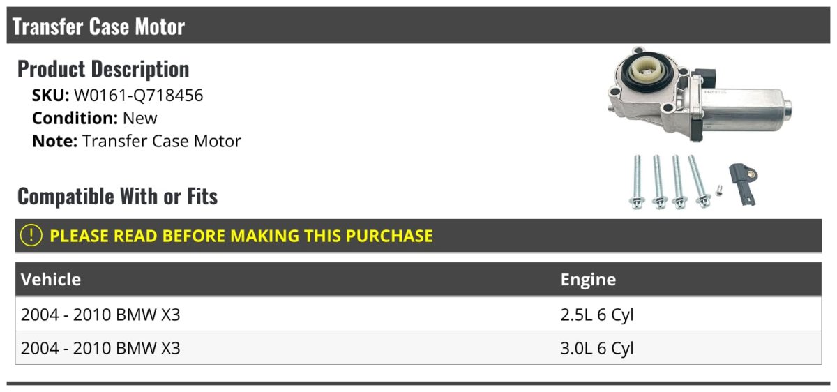 - Transfer Case Motor For 2004-2010 Bmw X3 2 5l 3 0l
