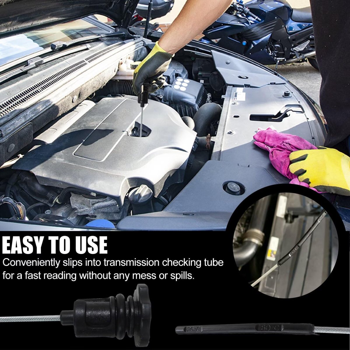 Fitment: for 300C, Challenger, Charger, Magnum with 5.7L V8 with NAG1/W5A580 5 Speed Trans. Permanent Solution: Locking dipstick design stays securely in vehicle, solving "cap sealed" transmission issues. Plug-and-play design requires no modifications - works exactly like factory dipstick. Accurate Readings: Properly calibrated to check transmission fluid levels hot or cold. You will Receive: 1x Automatic Transmission Dipstick.Other fine products