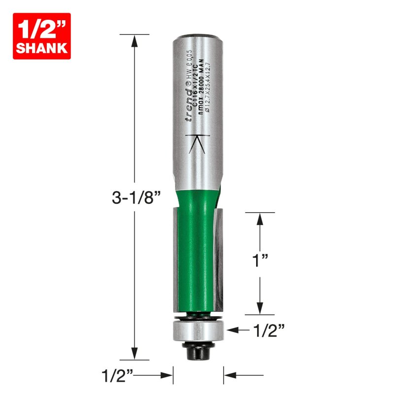 • Trend Craftpro Self-guided Trimmer Cutter Router Bit 1 2 Inch Shank Diameter Cut Length Tungsten Carbide Tipped C116x1 2tc