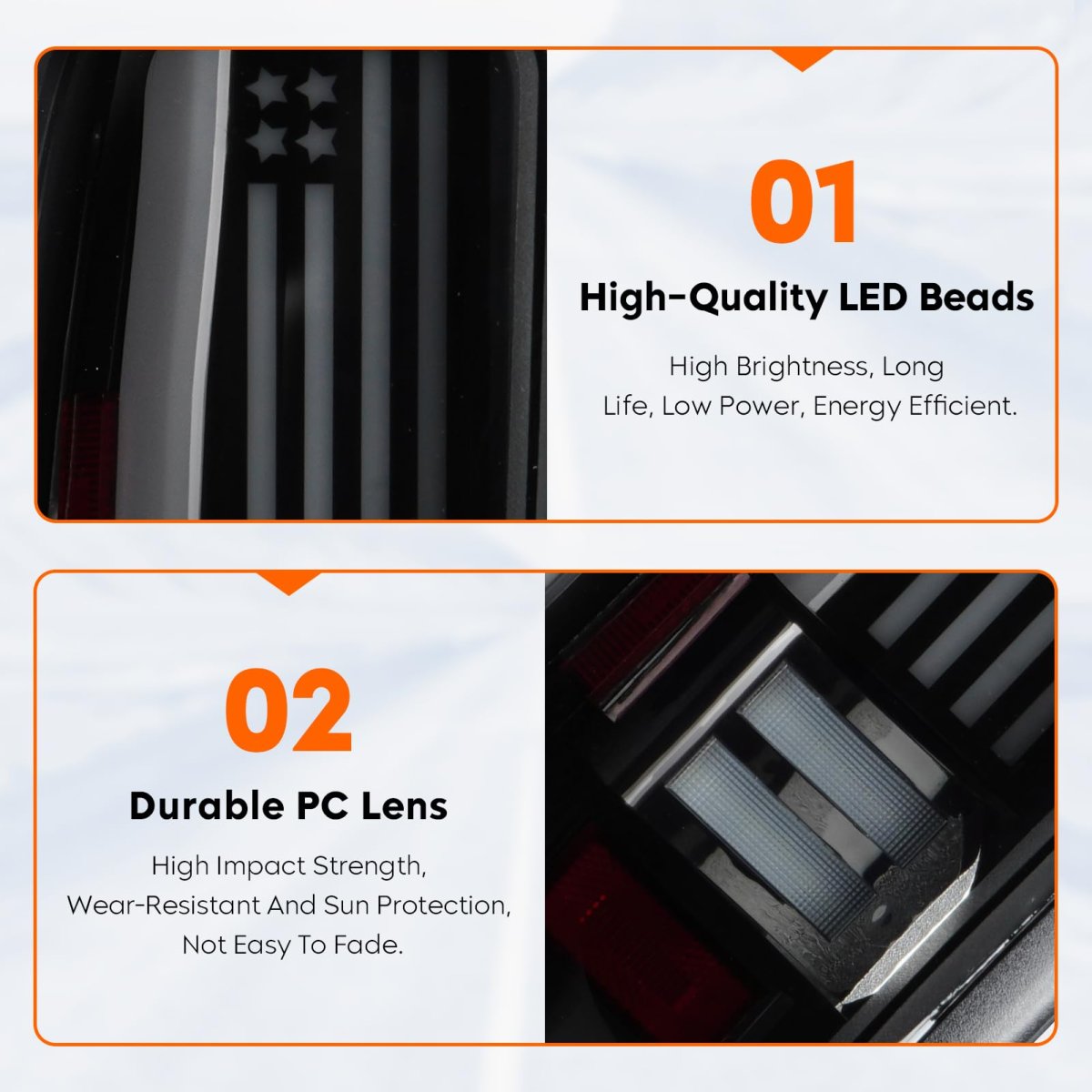 All-in-one Taillight: LED running light, brake light, turn signal light, reverse light (backup light) The backup light contains LED beads, you don't need to reuse your old backup bulb.. Compatible with: for Ram 1500 1994-2001, for Ram 2500 3500 1994-2002.. Replace for Part Number: 55055264AC, 55055265AC.. Durable Construction: Heavy-duty housings are made of superior ABS plastic to ensure exceptional weather and impact resistance.. Strict Quality Control: Tresound lights are always manufactured to meet specifications. During each step of production, multiple quality control checks are performed to ensure each part lasts for years to come..Other fine products