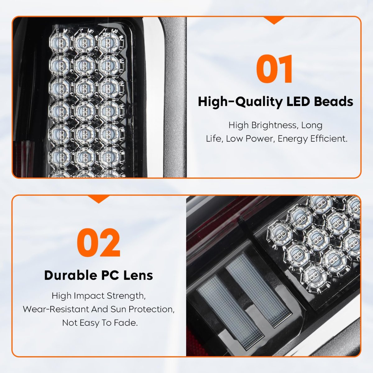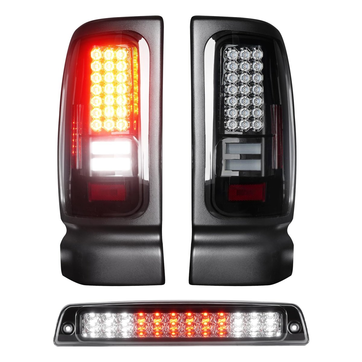All-in-one Taillight: LED running light, brake light, turn signal light, reverse light (backup light). The backup light contains LED beads, you don't need to reuse your old backup bulb.. All-in-one Brake Light: Brake light + cargo light function.. Compatible with: for Dodge Ram 1500 1994-2001, for Dodge Ram 2500 3500 1994-2002. Replace for Part Number: 55055264AC, 55055265AC. Durable Construction: Heavy-duty housings are made of superior ABS plastic to ensure exceptional weather and impact resistance..Other fine products