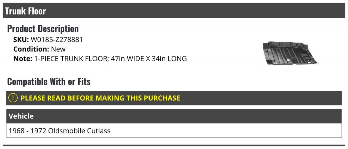 - Trunk Floor 47 Inch Wide X 34 Long Compatible With 1968-1972 Oldsmobile Cutlass