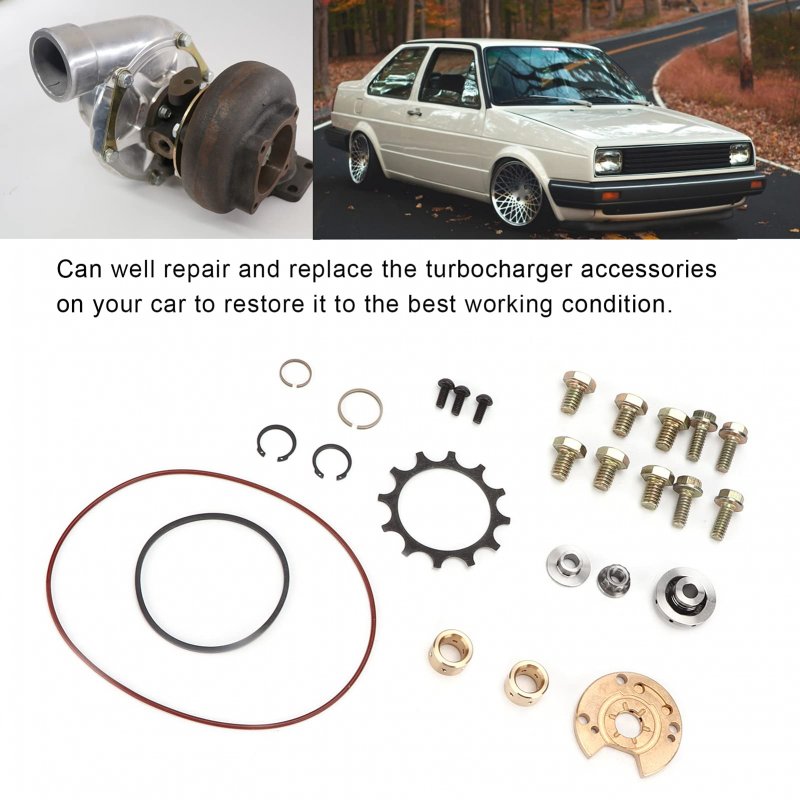 ??Excellent Performance??Turbo Rebuild Kit Equipped with the characteristics of wear resistance and resistance, which can meet your needs well.. ??Feature??Turbocharger Core Rebuild Kit Can well repair and replace the turbocharger accessories on your car to restore it to the best working condition.This set of turbocharger repair kits has a total of 26 pieces, which are fully furnished and can meet your needs well.. ??Standard Specification??Turbocharger Rebuild Repair Kit Conform to strict quality control standards, dependable to use.Manufactured according to the original specifications.Built to meet standard specification, strictly follow factory quality control..Other fine products
