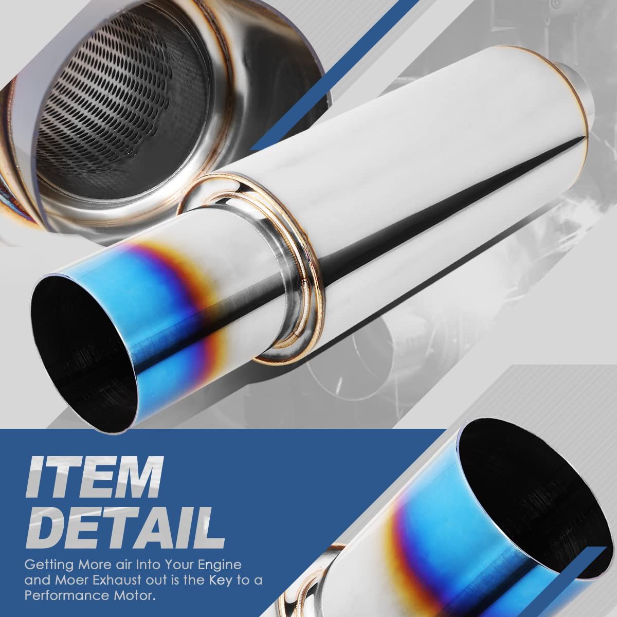 • Universal 2 25 Inches Straight-through Muffler With Double Walled Round Burnt Tip Stainless Steel