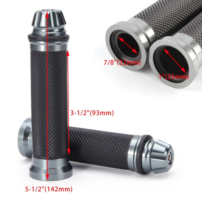 Motorcycle Grips Material : CNC Machined Aluminum + None-Slip Gel Rubber. Handlebar Grips Color: Black, Red, Blue, Silver, Gold, Titanium and Green are available. LEFT side is 7/8", RIGHT side is 1" for twist gas throttle;Will not fit ATV with thumb throttle, if you put them on ATV, you may need get 2 Pairs. Package Included:1 Pair (Left & Right) Motorcycle Hand Grips. Fit most Japanese Bikes Fit for any Street bikes, Sports bikes, Chopper, Scooters, Cruiser with 7/8" Standard Handlebars.Other fine products