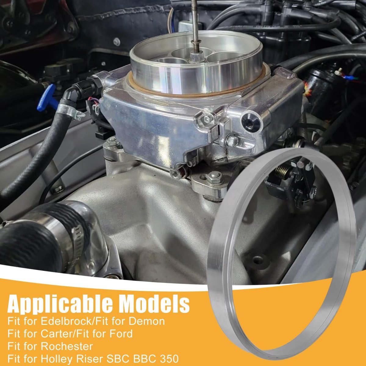 Universal 5-1/8" Fit: Fit for Edelbrock, for Holley for Demon, for Carter, for Rochester, etc. with 5 1/8 in Carburetor Opening; Fit for Carbs with 5 1/8in Opening (for Holley, for Edelbrock, for Rochester, etc); Fit for Ford, for Edelbrock, for Holley Riser SBC BBC 350. Precision Aluminum Construction: Machined from lasting aluminum for consistent performance and heat resistance. Improved Airflow: 1/2" height creates optimal clearance between the carburetor and air cleaner for better ventilation. Leak-Proof Seal: Includes an O-ring to ensure a tight fit and prevent air/fuel mixture leaks. Easy Bolt-On Installation: Direct replacement spacerno modifications needed for compatible carbs.Other fine products