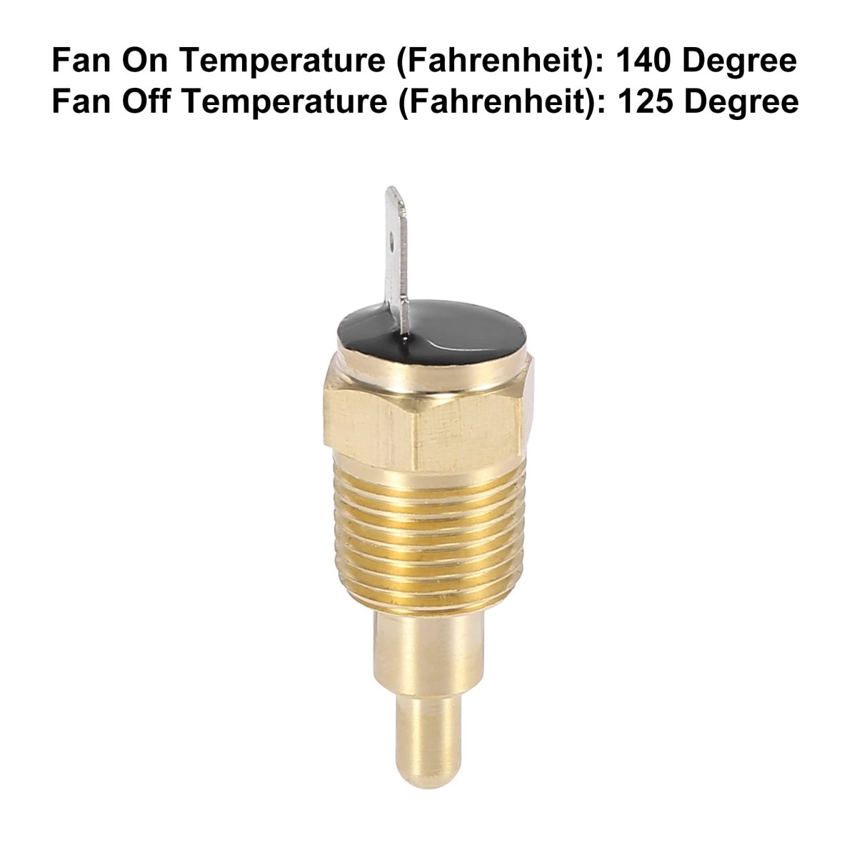 Application: Electric cooling fan temperature sensor switch used for measuring the temperature of any liquid such as water, motor oil and coolant.. Universal Fit: fit for most engine blocks, radiators, manifold or water outlets.. Thread Size: 3/8" NPT. Fan On Temperature Fahrenheit: 140 Degree, Fan Off Temperature Fahrenheit: 125 Degree..Other fine products
