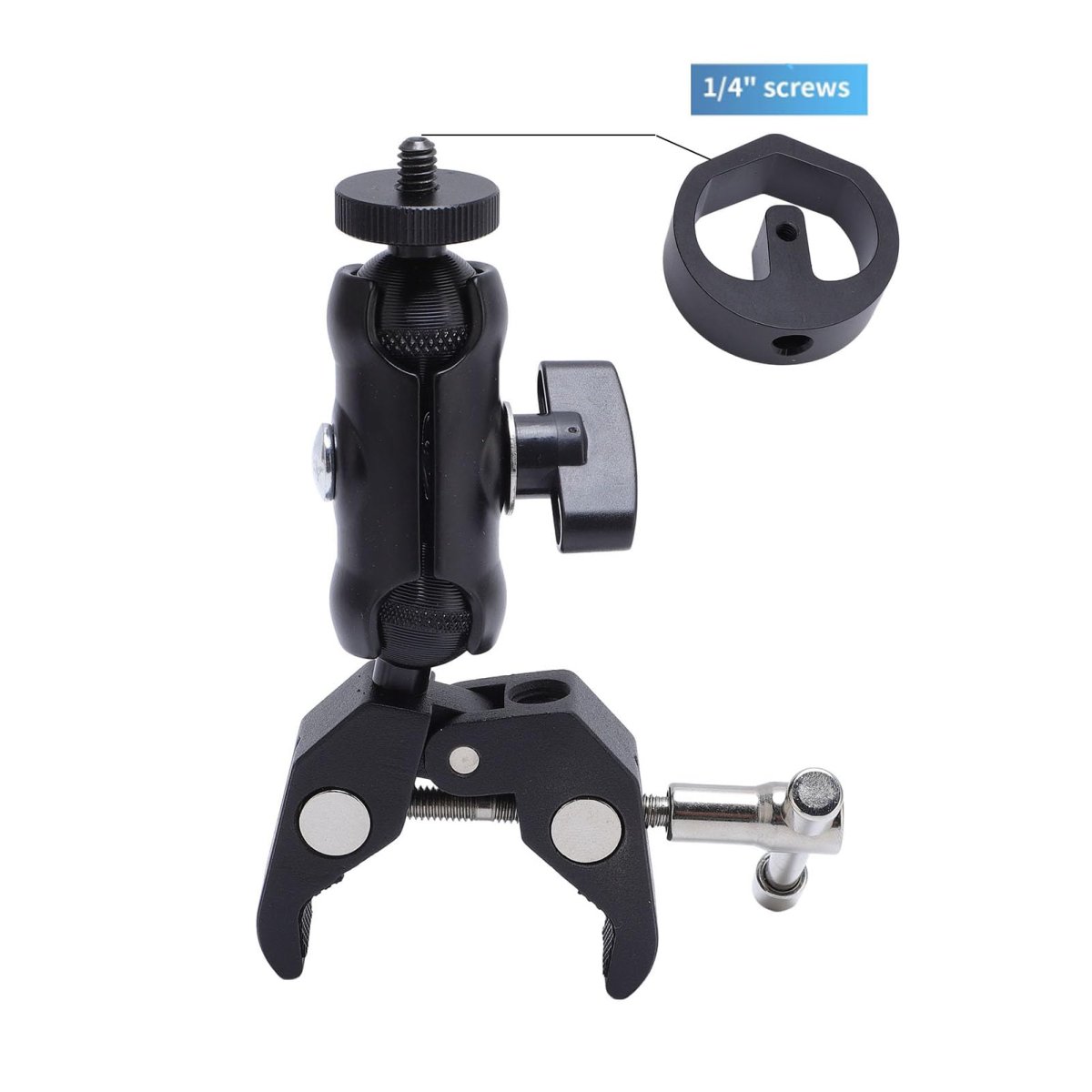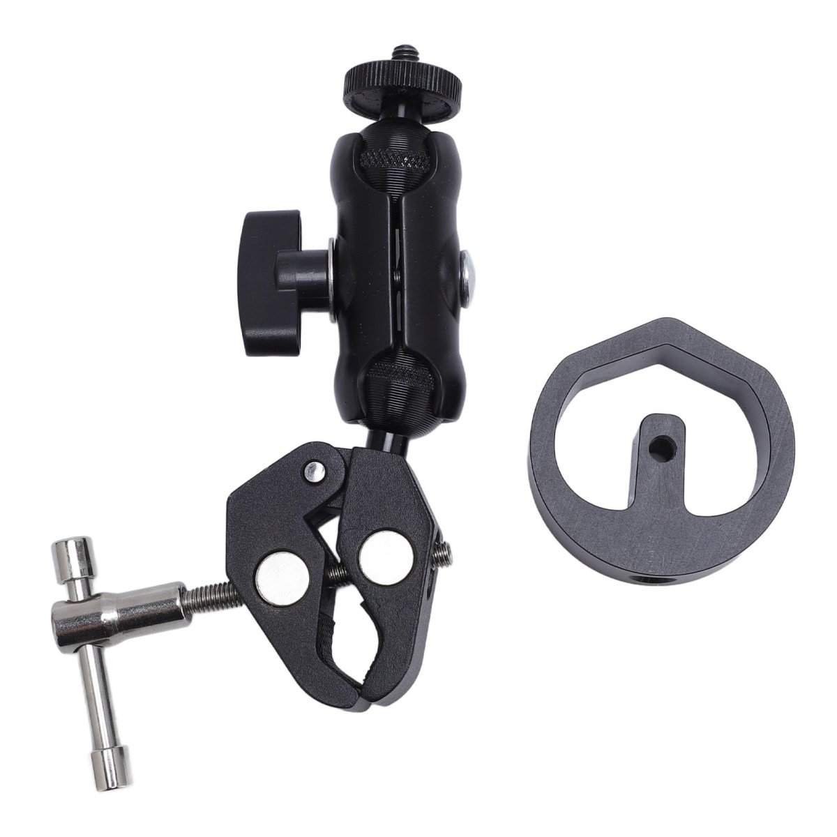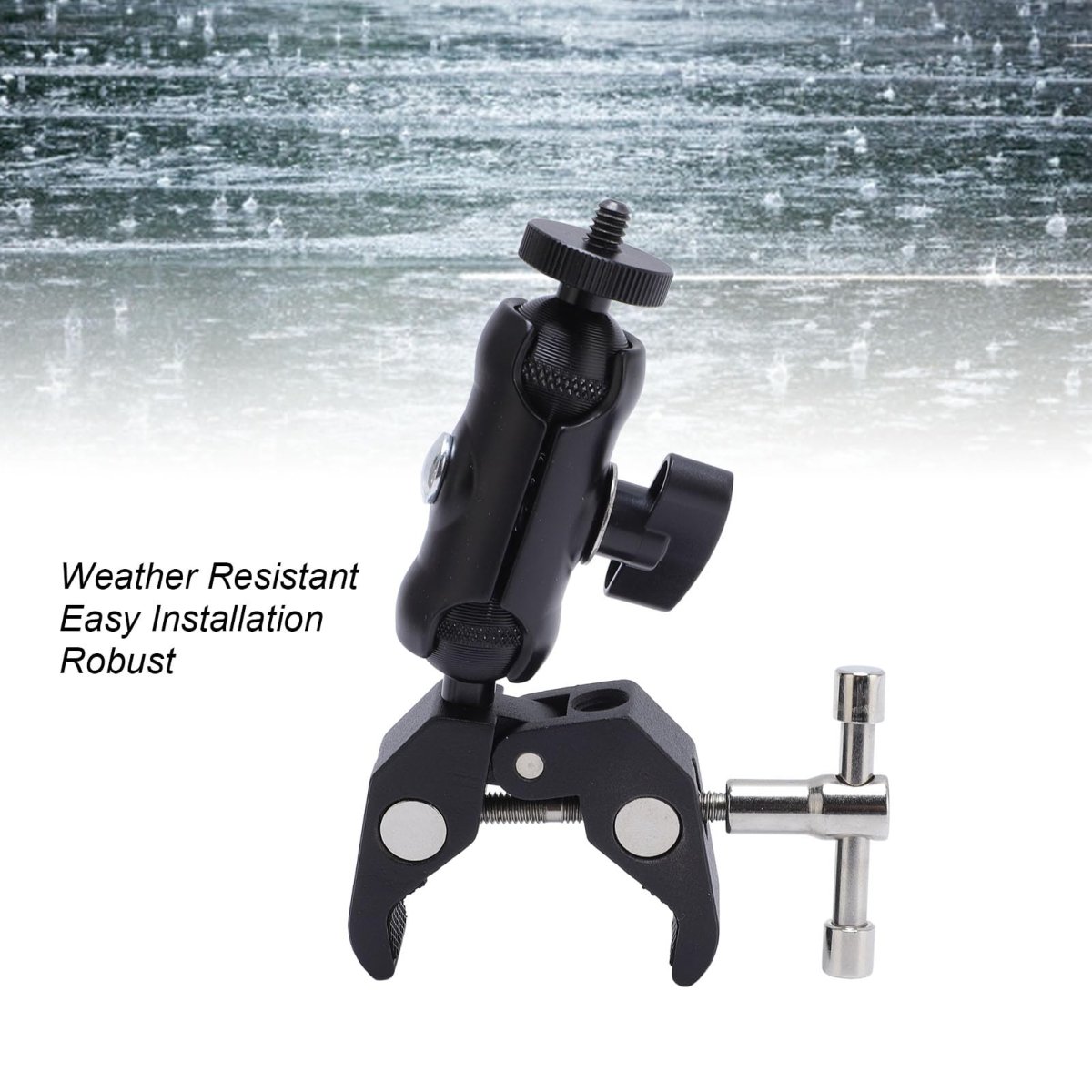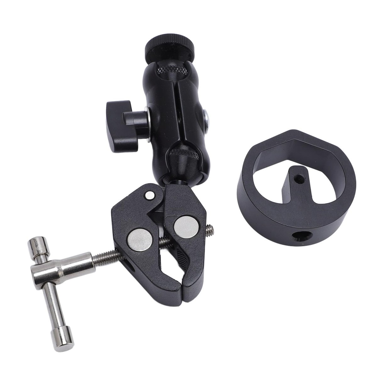 Designed for Mini Devices: ---- This clamp mount is specifically engineered for mini equipment, featuring an aluminum block that fits precisely into the OEM pipe adapter included with for Mini Dish, providing the best secure protection for mini device.. Versatile Applications: ---- This RV ladder mount is versatile and supports various surfaces such as table edges, roof racks, RV ladders, lawn chair railings, or window frames for convenient placement and use.. Secured Clamping Mechanism: ---- With a robust adjustable clamp mechanism, this roof mount securely attaches to surfaces, preventing accidental falls and ensuring your device remains safely in place while using universal exterior RV ladder features.. Sturdy and Long Lasting: ---- Made from aluminum alloy material, the adjustable clamp mount is rustproof and designed to withstand harsh weather conditions, making it ideal for frequent use with various RV ladder setups.. Versatile Angle Adjustment: ---- The mount allows for a wide range of adjustments (up to 360 degrees) to optimize the angle for mini device, ensuring better signal reception and a stable internet connection, enhancing overall performance..Other fine products