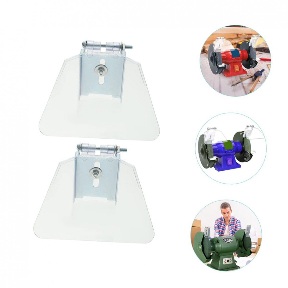 Eye shield for grinder: includes 2 grinder eye shield, that are compatible for use with most bench grinders on the market.. Bench grinder eye shield assembly: our bench grinder have great protection performance for safety use, allow you better complete the sanding work.. Bench grinder shield kit: the bench grinder eye shield are perfectly adapted to the machine, which are convenient to use.. Grinder protective shield: size:9.70x6.80x1.40cm; bench grinder shield have great protection performance for safety use, allow you better complete the sanding work.. Bench grinder: bench grinder guard shield is constructed of stainless steel and abs, which can effectively prevent deformation, and can be used for a long time..Other fine products
