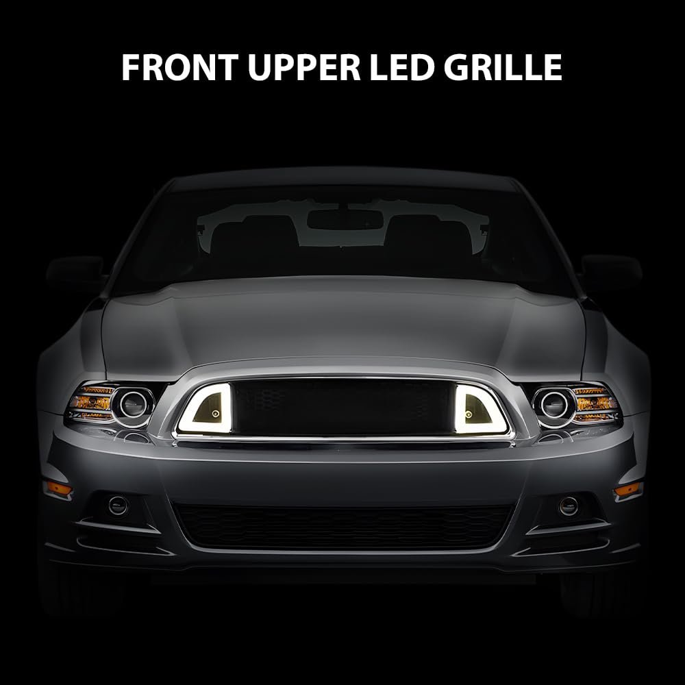 - Upper Grille W Drl Led Accent Vent Lights For Ford Mustang 2013 2014 Front Bumper Honeycomb Mesh Hood Grill Except Shelby