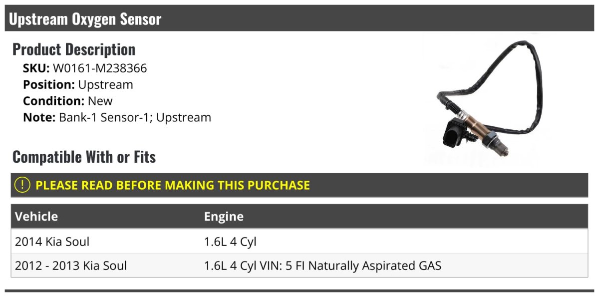 - Upstream Oxygen Sensor For 2012-2014 Kia Soul