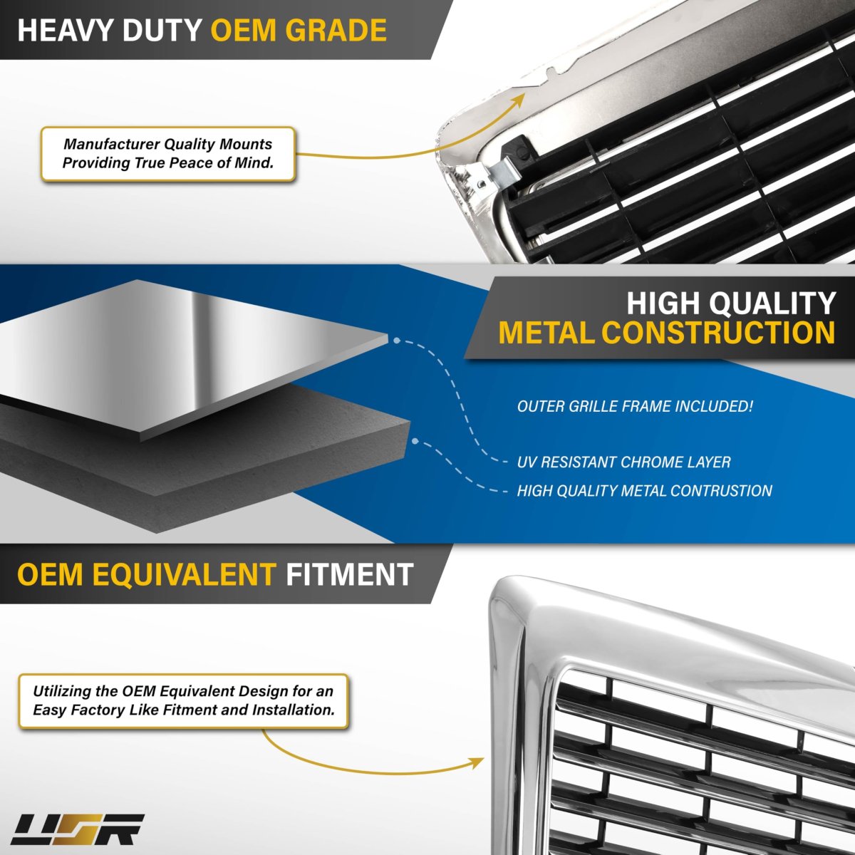 MODERN AVANTGARDE AMG STYLE FRONT GRILLE WITH METAL CONSTRUCTED OUTER FRAME Time to update your old, faded or even damaged stock grille with This New Black and Chrome AMG Avantgarde Modern Style like S600. Perfect 86-93 W124 Pre-Face E Class Accessories to Upgrade and a great gift Idea or Replacement Part. Compatible with 1986-1993 Mercedes Benz E-Class W124 All Models such as 260E / 300E / 400E and 500E.. OEM FITMENT Manufactured with excellent quality. Molded to fit like stock parts to meet your upgrade and replacement needs. Installation is quick and easy. OEM Part Numbers (Front Grille) 124-880-07-83. MATERIAL Center of Grille using top-grade ABS and polycarbonate plastic. Outer Frame is Metal Constructed with Crome Finish.. EASY INSTALLATION / REPLACEMENT New Front Grille AMG Avantgarde Style / Look Black and Chrome with 6 lines in the middle and an outer Metal Constructed Frame. A Quick and easy DIY install with basic tools. No modifications needed. No Error after install..Other fine products