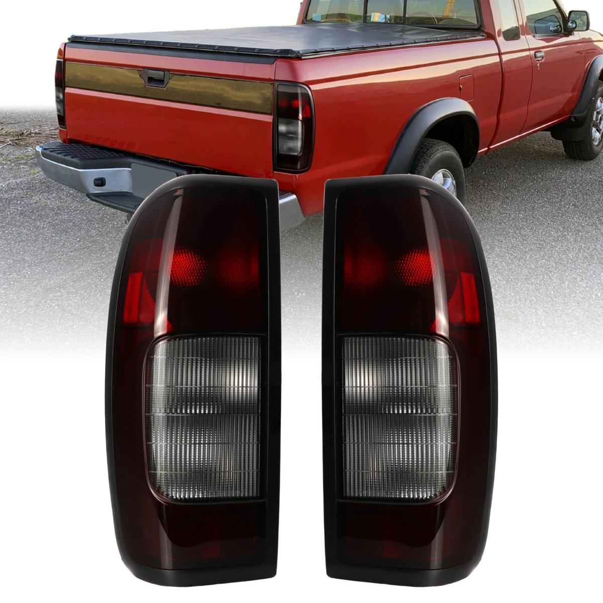 SMOKED RED LENS REAR TAIL LAMPS Time to update your old, faded or even damaged stock Lights with These SMOKE RED Lens Rear Tail Lights Set of 2 Pieces. Perfect 98-04 Frontier Pick-Up Accessories to Upgrade and a great gift Idea or Replacement Part. Compatible with 1998-2004 Nissan Frontier Pickup Truck All Models such SC, SVE, XE and Base.. OEM FITMENT Manufactured in Taiwan with excellent quality. Molded to fit like stock parts to meet your upgrade and replacement needs. Installation is quick and easy. OEM Part Number: (LEFT) 26559-3S525, 26559-7B425 / (RIGHT) 26554-3S525, 26554-7B425. MATERIAL Lens and housing using top-grade ABS and polycarbonate plastic. Lens offer UV and impact resistance. Housing sealed by manufacturer to offer water resistance.. PLUG AND PLAY READY New set (Left + Right) Rear Smoked Red Lens Taillight with Mounting Hardware is included, Just need to reuse Original Bulbs and Sockets making this a True Plug-n-Play. A Quick and easy DIY install with basic tools. No re-wiring or modifications needed. No Error after install..Other fine products