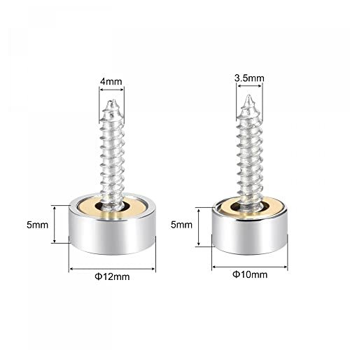 Material: Brass; Finish: Polished stainless steel; 10mm Screws: Cap Size: 10mm x 5mm (D*H); Screw Size: 4mm x 20mm (D*L). 12mm Screws: Cap Size: 12mm x 5mm (D*H); Screw Size: 4mm x 20mm (D*L). Material: Made of brass material with a brushed stainless steel finish to resist daily corrosion, friction and tarnishing which can be used for a long time.. Application: Widely applied in mirrors, tea tables, wardrobes, glass sign, other wood or glass furniture for home, garden, etc..Other fine products