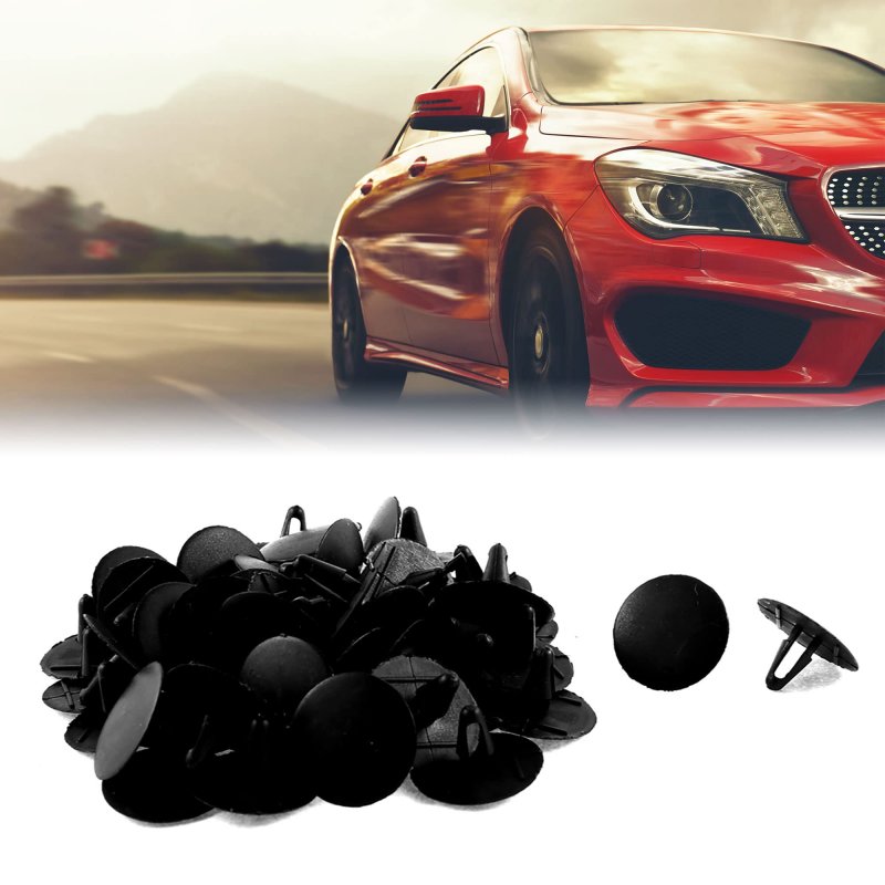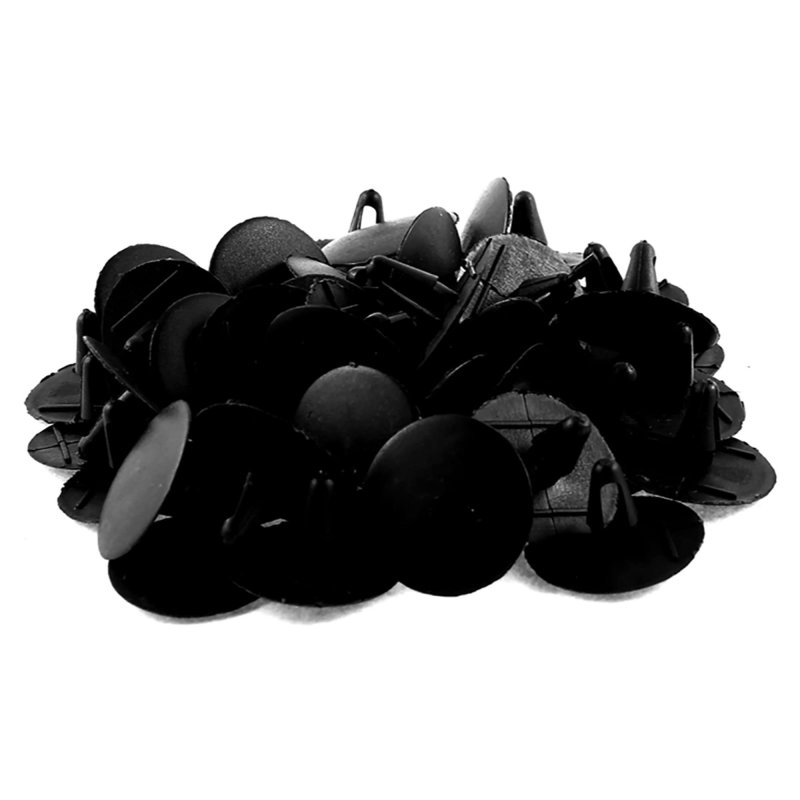Product Name: Clips/Rivets/Fastener; Color: Black; Fit Hole Size: 8mm/0.31". Head Diameter(max.): 29mm/1.14"; Stem Length: 15mm/0.59"; Total Length: 18mm/0.71". Quantity: (+/-2%)52; Interchange Part Number: Under Engine Splash Guard Rivet Fastener Clips; Manufacturer Part Number: Plastic Push-Type Bumper Retainer Clip. Other Part Number: Screw Mudguard Body Door Trim Panel Hood; Applications1: Defender Door Card Interior Weatherstrip; Applications2: NYLON CHRISTMAS TREE Carpet Floor Mat Clips. Package Content: 52Pcs(+/-2%) x Plastic Clips; Brand: Aftermarket for Toyota; Material: Plastic.Other fine products