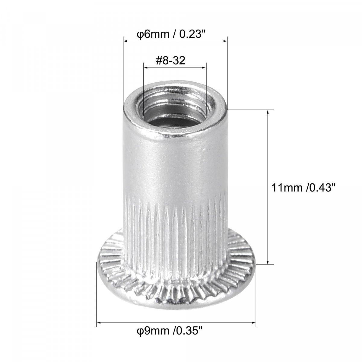 - Uxcell 8-32 Rivet Nuts Aluminium Alloy Knurled Flat Head Threaded Insert Nut Silver 50pcs