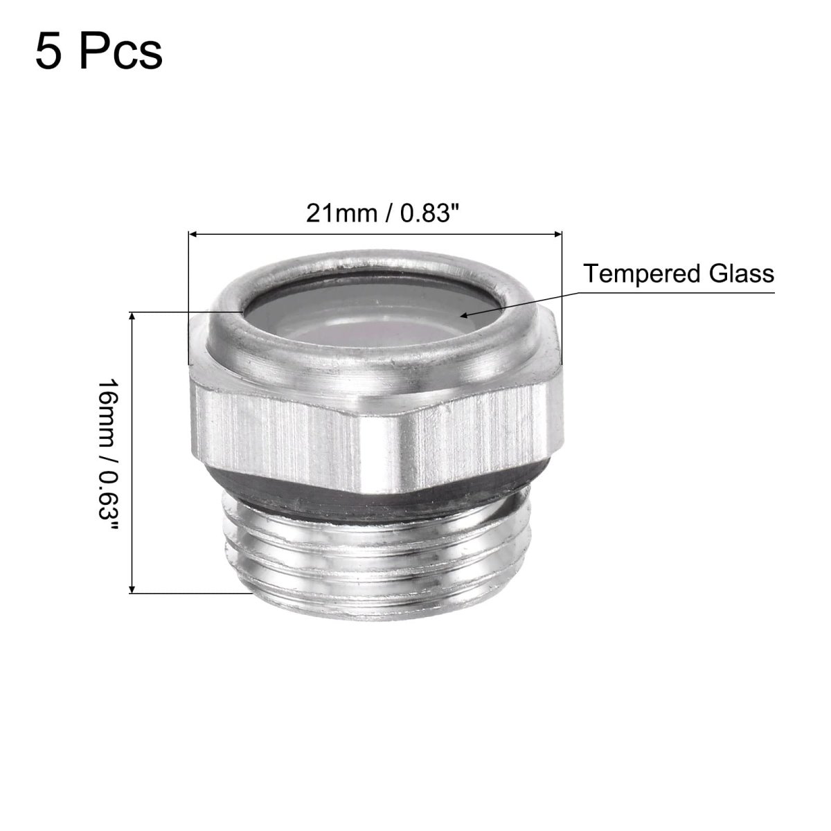 Uxcell Air Compressor Oil Level Gauge Sight Glass M22x1 5mm Male Threaded Aluminum Liquid Indicator Window 5pcs