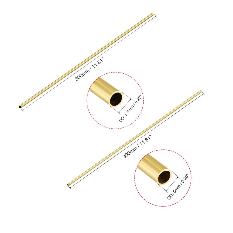 [What You Will Get] - You will get a total of 6 pieces of brass tubing. There are 2 different sizes of outer diameters: 5mm and 5.5mm. The same wall thickness is 0.5mm, and the total length is 300mm.. [Material] - Made of brass for high strength, weld-ability, oxidation resistance, corrosion resistance and long-lasting durability.. [Seamless Construction] - Smooth and seamless surface for precision applications.. [Application] - Commonly used in DIY projects, hobbies, crafts, architectural models, home decor, framing, industrial, gardening products and more..Other fine products