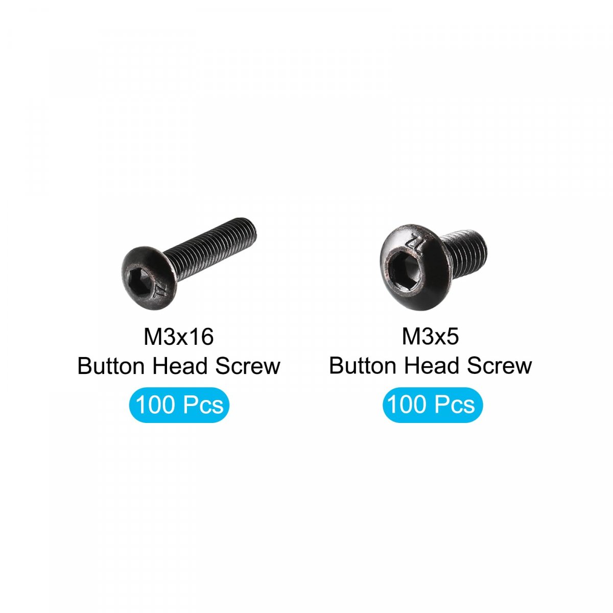 - Uxcell Button Head Hex Socket Cap Screws M3x5mm And M3x16mm Alloy Steel Black 200pcs