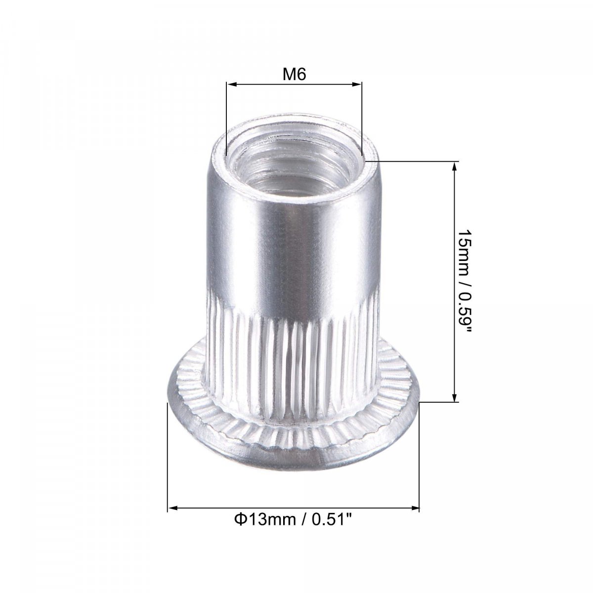 - Uxcell M6 Rivet Nuts Aluminium Alloy Knurled Flat Head Threaded Insert Nut Silver 25pcs