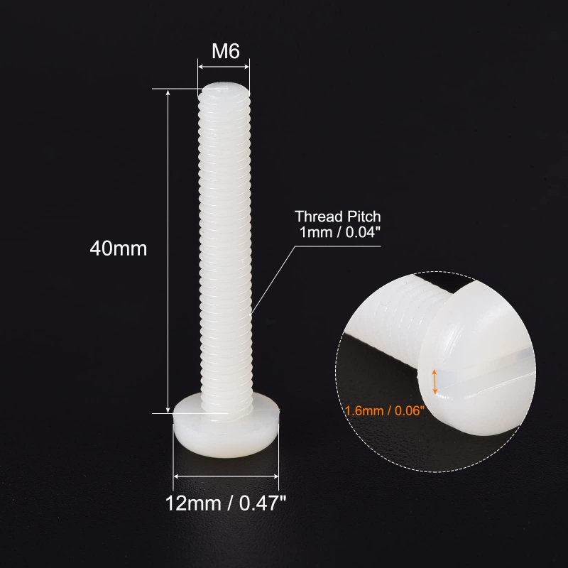 - Uxcell M6 X 40mm Nylon Machine Screws Pan Head Slotted Screw Fasteners 24pcs
