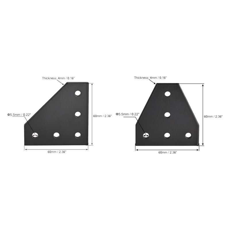 - Uxcell Outside Joining Plate Set 60x60x4mm 5-hole Joint Brackets For 2020 Aluminum Extrusion Black 9pcs L Shape 4pcs T 5pcs