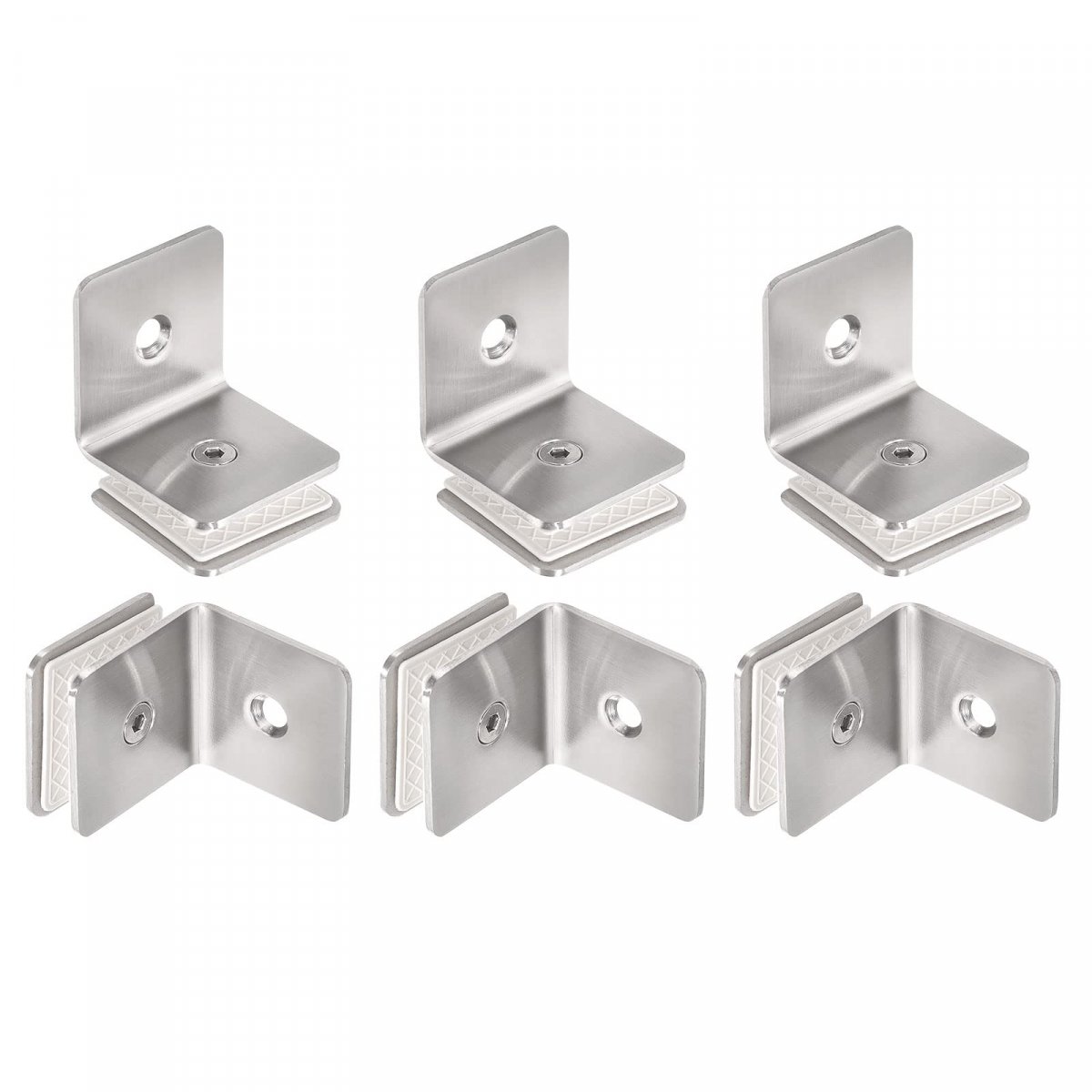 • Uxcell Stainless Steel 90 Degree Glass Clamp 6pcs For 8-12mm Thickness Single Side Square Frameless Corner Bracket Clip Shower