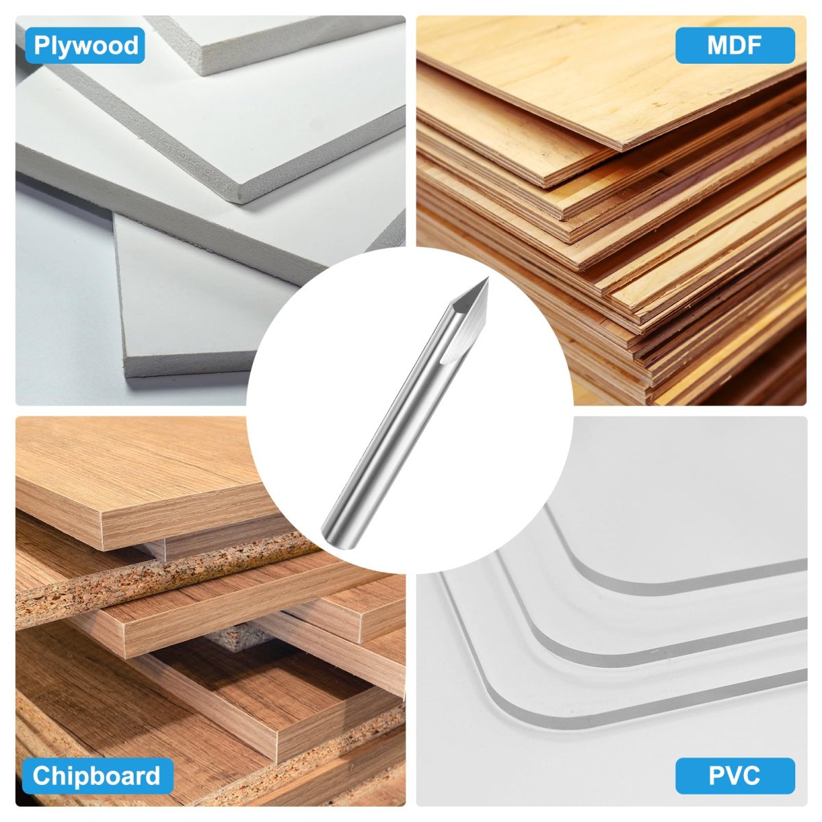 SPECIFICATIONS: Angle: 60 Degrees, Shank Diameter:1/4", Overall Length:2".. APPLICATIONS: Cuts all composition materials, plywood, hardwoods, and softwoods, chipboard, and MDF, plastic etc. CNC router bits are designed to cut deep or shallow V grooves.. HIGH HARDNESS: Carbide material has high strength and toughness that can create nice and smooth cuts, is corrosion-resistant and heat-resistant can have a longer service life.. WIDE APPLICATIONS: Great for cutting, engraving, fine carving and lettering details for sign making in wood and other soft materials. Use on handheld router, table-mounted router, CNC and other automatic routers.. WARM TIPS: Cannot be used to cut ferrous metal and non wood materials. All bits must be inserted in the collet in full length..Other fine products
