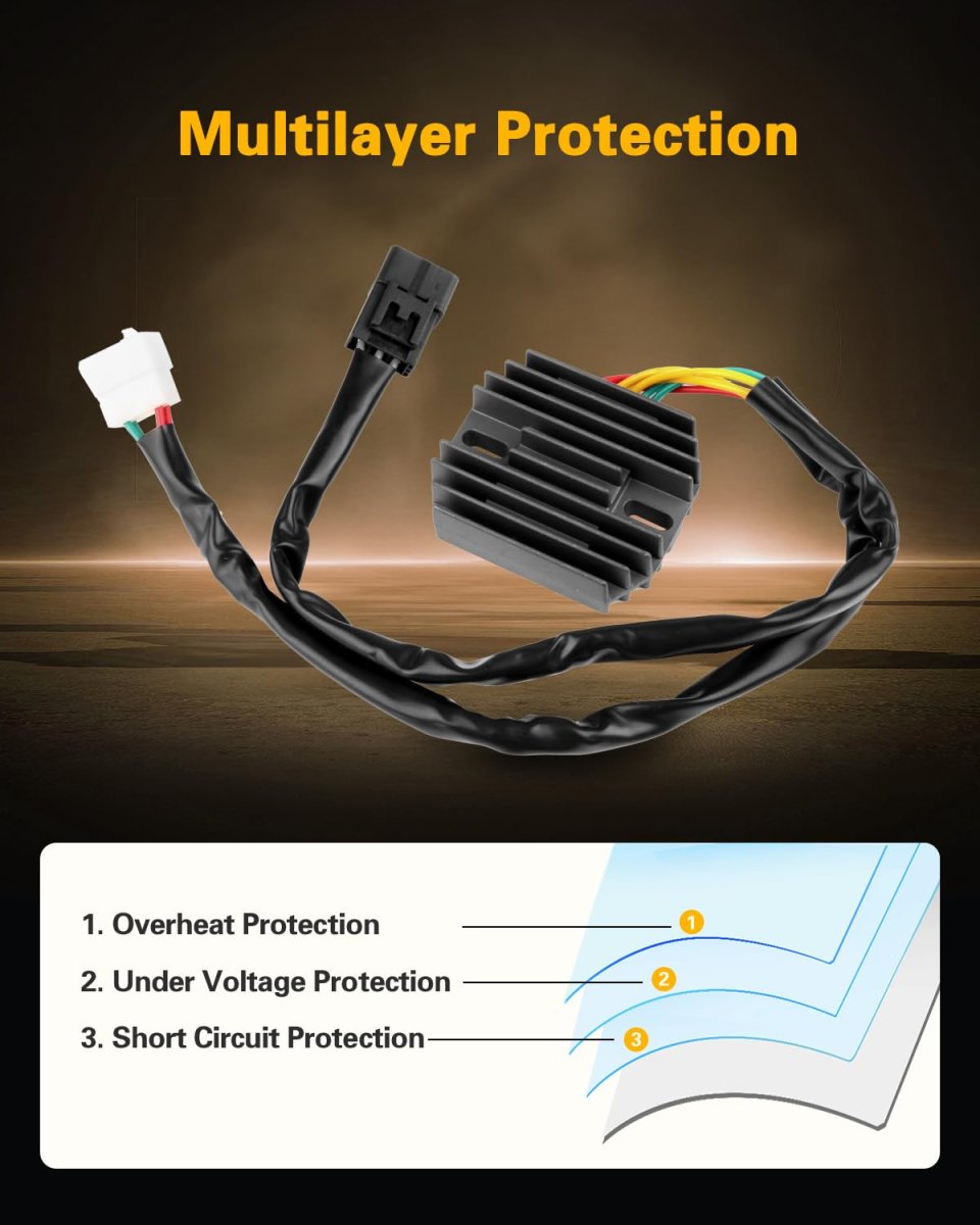 COMPATIBLE MODELS - Voltage Regulator Rectifier fit for 2001-2006 for Honda CBR600F4i. REPLACEMENT PART NUMBER - 31600-MBW-D21; Fit for motorcycle and boat motors, DIY engines and so on. HIGHER PERFORMANCE - Upgrade your vehicle's electrical system with a new regulator rectifier to enhance overall performance. This essential component not only increases light brightness and improves ignition efficiency but also ensures smoother gear shifting and prevents over-charging of the battery. By replacing an old or damaged rectifier voltage regulator, you can optimize your vehicle's electrical output for a more reliable ride.. WHEN TO REPLACE - If your current rectifier is damaged, it's crucial to replace it promptly. A faulty regulator rectifier can lead to poor battery charging, dimming lights, and even damage to your vehicle's electrical components. Replacing it will maximize battery life and keep your vehicle in top condition, ensuring you can enjoy worry-free rides..Other fine products