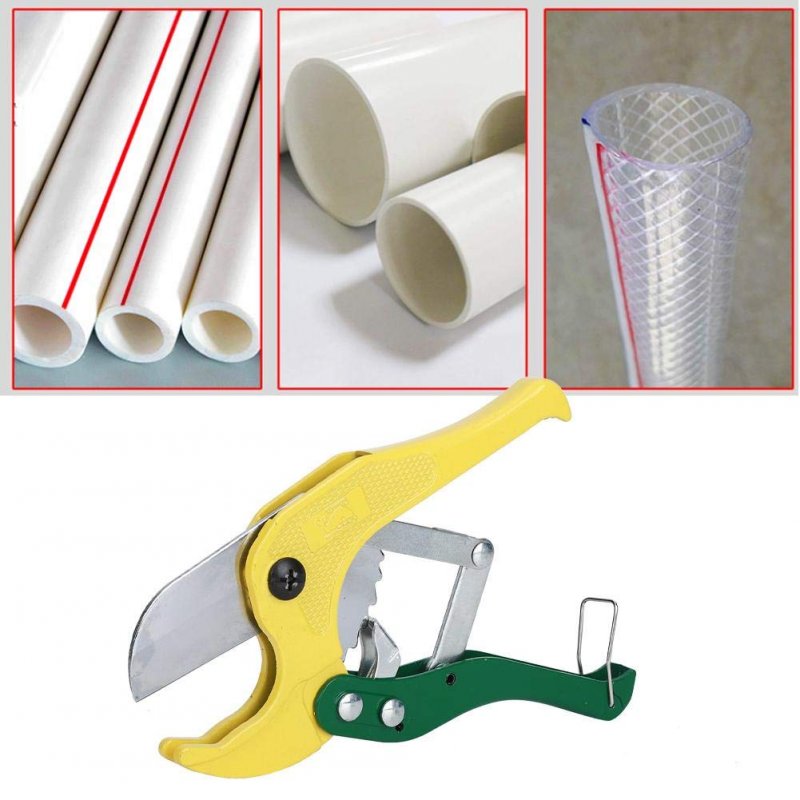 Excellent Design: The handle is professionally designed, comfortable to hold, simple to use, and effortless to operate.. Premium Quality: Made of high-quality aluminum alloy die-casting, long service life.. Application: PVC pipe cutter, special for plastic pipe cutting, easy to use, perfect for the professional or for DIY use.. Practical Tool: With manual buckle switch, easy to store when not in use, which saves more space.. Great Performance: The blade is incisive, heat-treated, the hardness is high, and the cutting efficiency is high..Other fine products