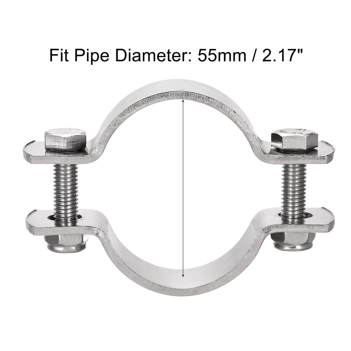 Fit Pipe Diameter: 55mm / 2.17". Package Content: 1 x Pipe Support with Bolt, Nut. Made of polished 304 stainless steel, sturdy and durable.. It is designed to support pipes or rods, and the bolt size is M8.. Easy to install, and can be installed on the wall or ceiling..Other fine products