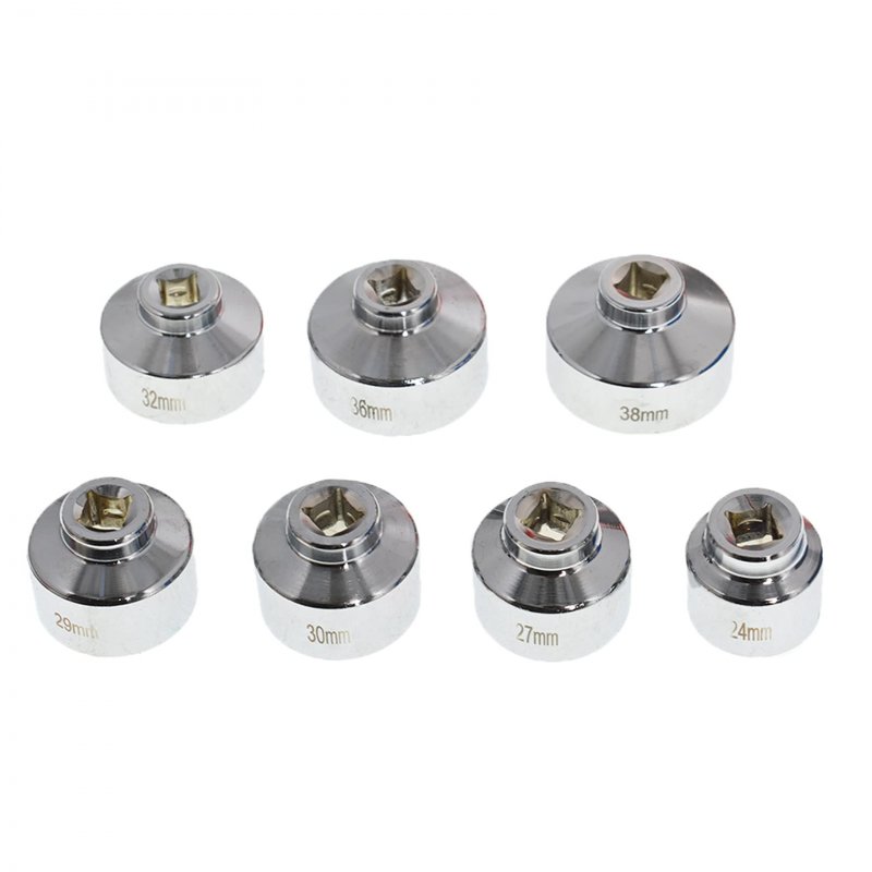 7-Piece oil filter cap wrench metric socket set tool kit 24mm 27mm 29mm 30mm 32mm 36mm 38mm. For vehicles with newer oil filter design, replacement for Mercedes, Cadillac, Buick, Saturn, SAAB, Dodge, Ford, Mini Cooper, and some BMW and Mack Truck. Constructed from chrome-vanadium steel for maximum strength and corrosion-resistance. Low profile short well 6-point design with a 3/8-inch socket drive for a ratchet or extension; Provides multiple contact points to engage the housing cap securely for maximum removal torque. Heavy-duty 8.5 x 4.5 x 2 inch (21.6cm x 11.4cm x 5.1cm) plastic blow-molded carrying case for easy transportation, safe storage, and simple organization.Other fine products