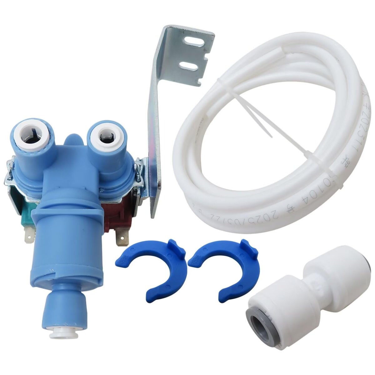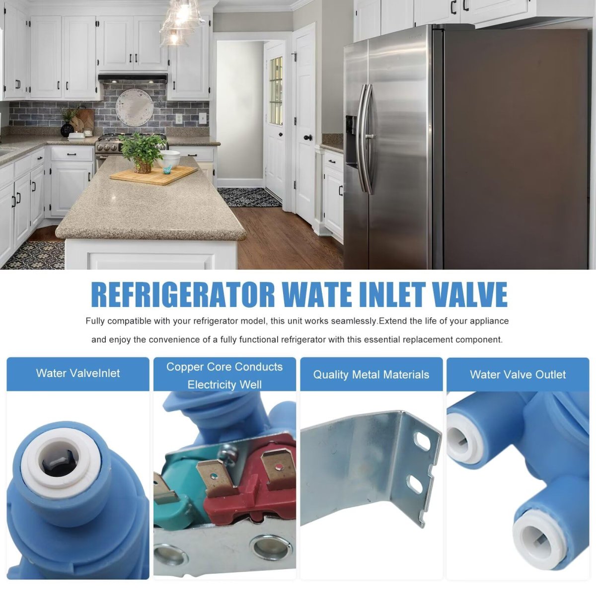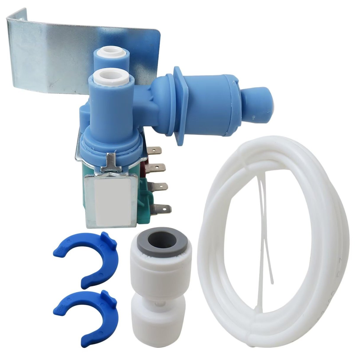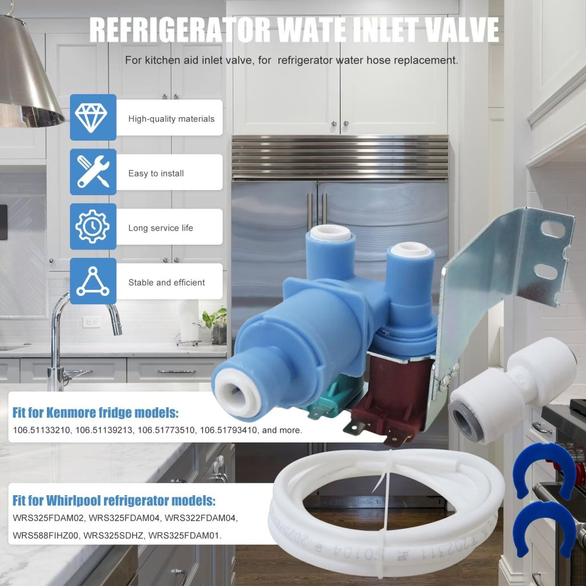 Xspeedonline Water Inlet Valve Compatible for Maytag, Compatible for Part# 2186486, 2304757. Replace Part Numbers: IMV708, W10179146, WPW10179146VP, W10408179VP, 2304833, AP526347, WPW10179146, W10155357, W10408179, 1938614, 2186486, 2188622, 2188708, 2188746, 2205762, 2255457, 2304757, 2304833, 2315534, 4389177. Compatible for Whirlpool, for Kenmore, for KitchenAid, for Amana, for IKEA and for Maytag refrigerators. Simplified Installation Process: Featuring standard 1/4-inch flare connections and familiar terminal sizes, this valve is designed for a straightforward installation. Clear instructions are included to help you replace your old valve quickly. Solve Issues: No water from dispenser, No ice, or leaks. It regulates water to your fridges ice maker and dispenser, restoring clean water flow and fast ice production. Specifications: Electrical rating: 120V AC Frequency: 50/60 Hz Power: 35W (Brown solenoid), 20W (Green solenoid). Inlet: 1/4" compression fitting Outlet: 7/16" and 1/2" UNF thread Flow rate: 130 CC/7.5 seconds.Other fine products